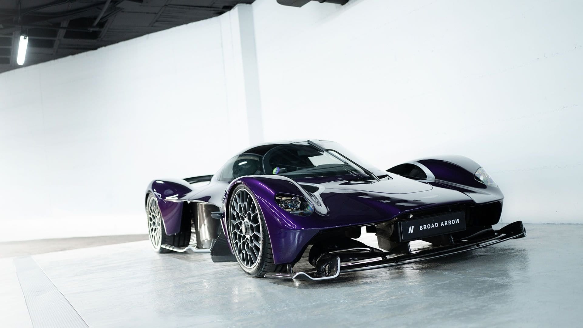Chassis No. 39 was commissioned through Aston Martin’s bespoke “Q” division for Argentine collector Alejandro Roemmers. The car is finished in a stunning Gloss Storm Purple with Trophy Silver accents and extensive exposed gloss carbon fiber, protected by full-body paint film. Inside, the cockpit is wrapped in Phantom Grey Alcantara with silver contrast stitching, combining luxury with purpose-built minimalism.
