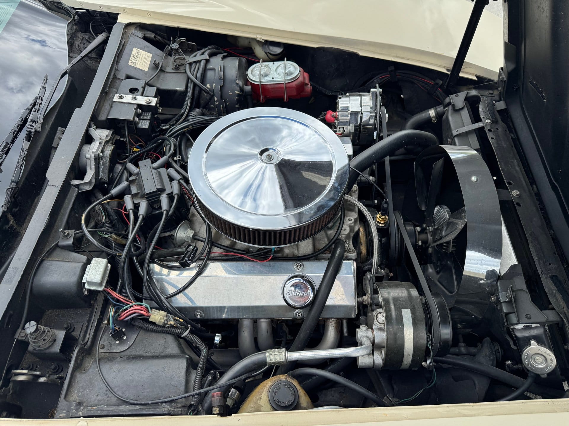 This particular 1981 model has undergone a partial restoration that introduced several updates under the hood and inside the cabin. Power comes from a mildly built 350 cubic-inch V8 engine that has been enhanced with aluminum cylinder heads, an Edelbrock intake manifold and a larger carburetor. The modifications are intended to improve engine response and overall performance while maintaining the classic small-block V8 character associated with the Corvette name.