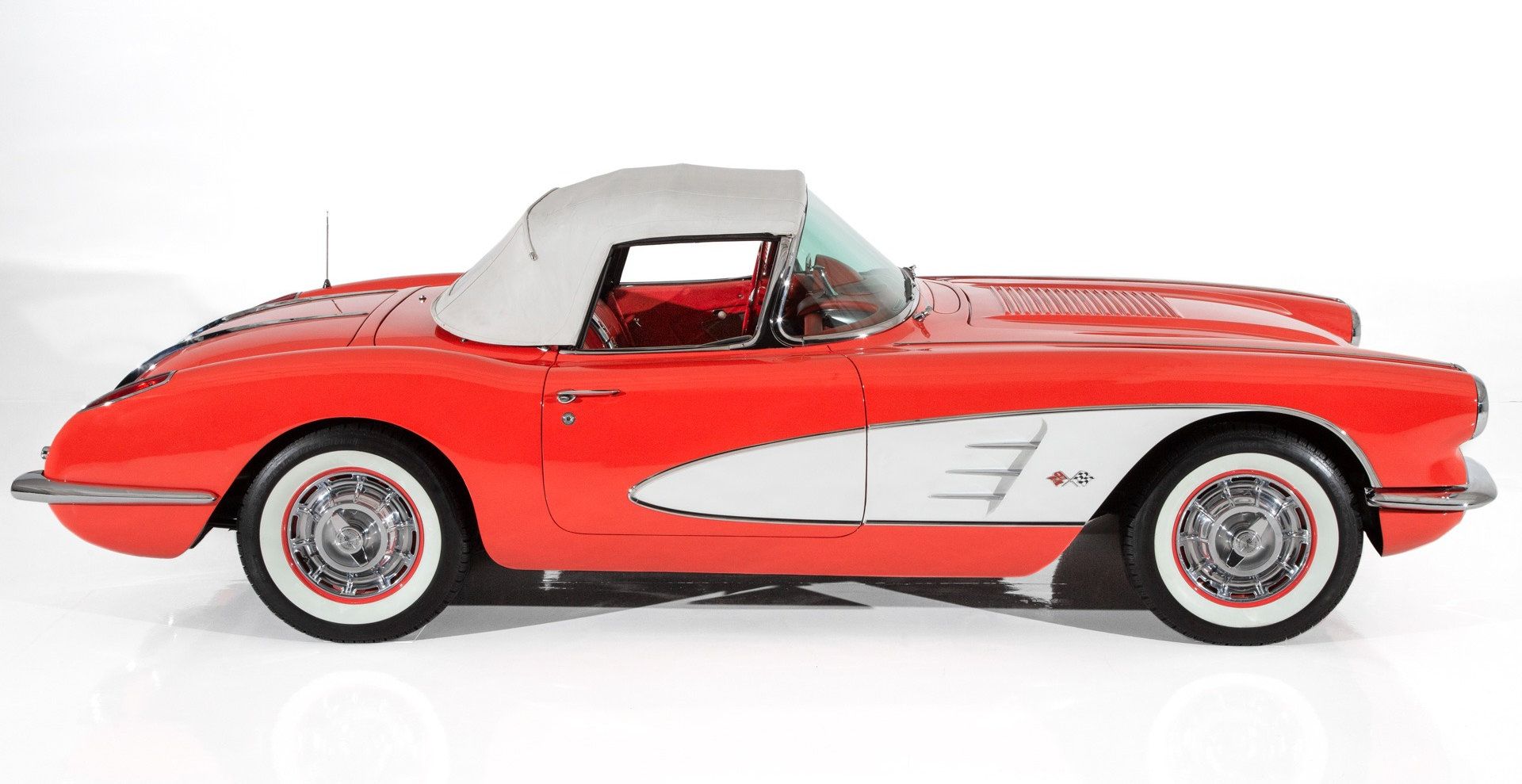 Imagine how jealous your neighbors, friends, and family will be when they see you with this car. This Corvette is trimmed with amazing chrome and stainless trim for a show quality appearance. Don’t forget to enter the code WIN to claim double tickets for your entry. It is wearing a Signet Red Paint with white coves, and a white convertible top.