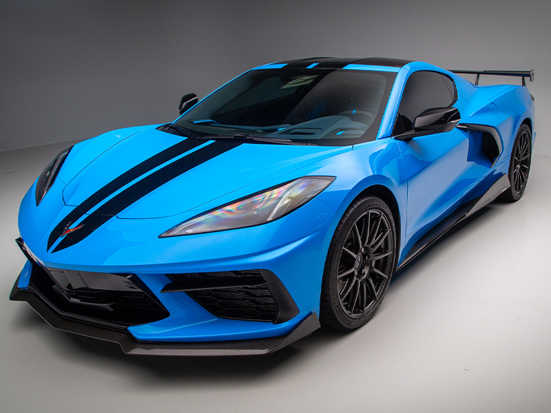 This Corvette Stingray features a Rapid Blue exterior and a premium 3LT leather interior with GT2 Competition seats. Additionally, it comes with a long list of factory options, including the Z51 Performance Package, Performance Suspension with Magnetic Selective Ride Control, and Front Lift Adjustable Height.