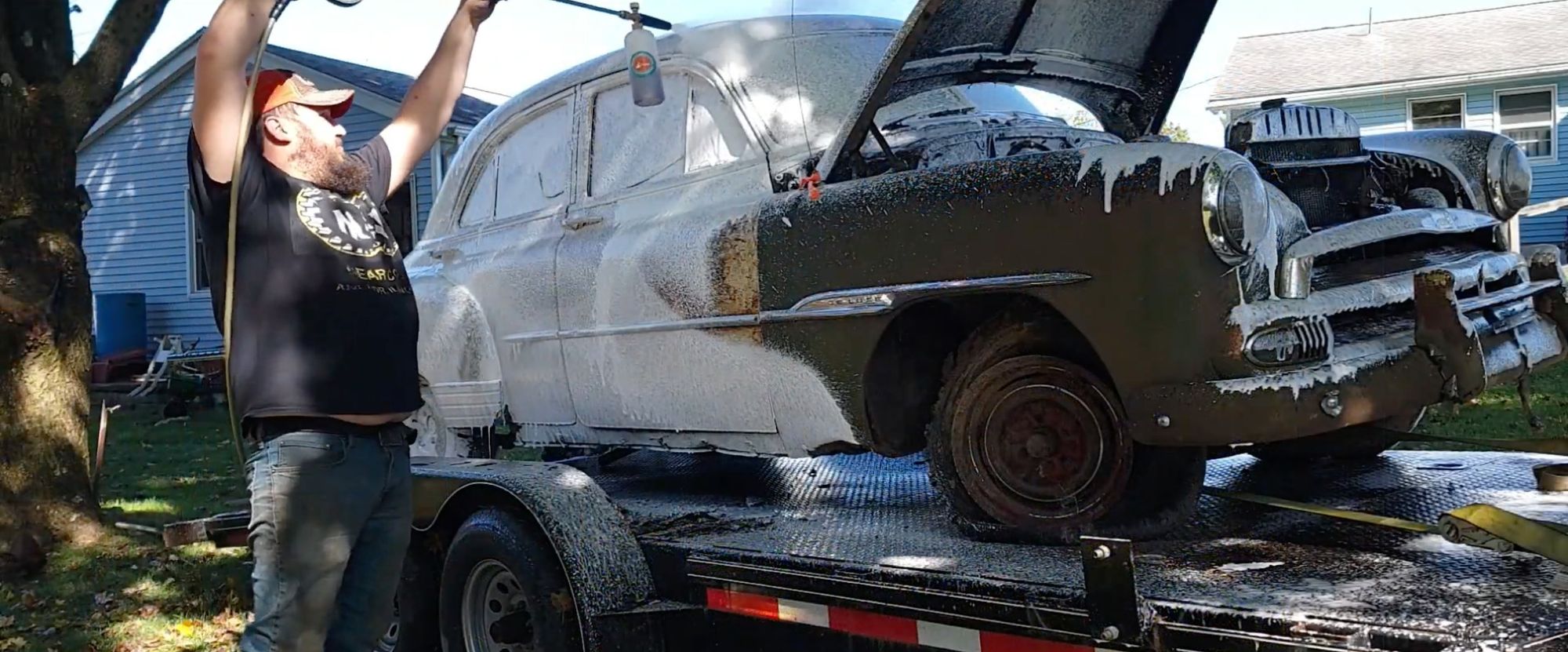 So the guy got to work pressure washing, a quintessential step in the restoration process. Quickly, dirt began to pour from the old body of this beaten up old work horse. However, the work did not stop there, how could it for such an aged automobile. On top of all that, the chrome trim had to be given special care so as to preserve a nice even shine. When the job was done, this car cleaned in the sunlight like a crisp new ride sporting a lovely patina and a new outlook on life.