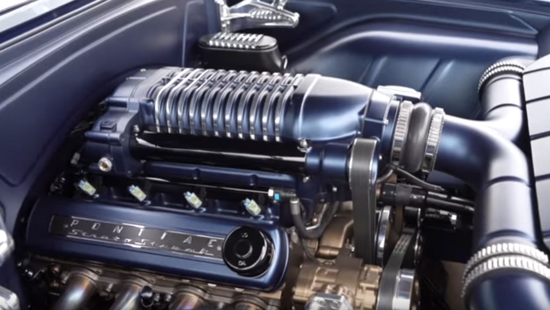 This 1956 Pontiac Star Chief is a sight to behold, under the hood of this classic beast is an LSX crate engine with LS3 heads and a Whipple supercharger. That insane engine is mated to a 4L80 transmission which helps to transfer the +900 horsepower to the one-off EVOD wheels. As has become custom in recent years for big classic cars, this thing is sitting on air suspension giving it a sleek and dominating presence when lowered to the ground. The suspension has three settings: 1 maximum low, 2 low but drivable, 3 lifts the nose up to allow for steep driveways and loading or unloading the car on to or from a trailer.