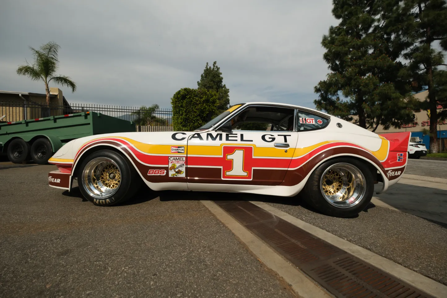 Adam Carolla’s iconic L28-powered Datsun 260Z, a piece of IMSA racing history, recently sold for $80,000 in Glendale, California. Originally built in the mid-1970s by Bob Sharp Racing as a promotional pace car for the GTU class, this car has a storied past, including its sponsorship by the R.J. Reynolds Tobacco Company. The vehicle’s fiberglass G-nose bodywork and period Camel GT livery, complete with yellow, red, and brown stripes, pay homage to its roots in motorsport.