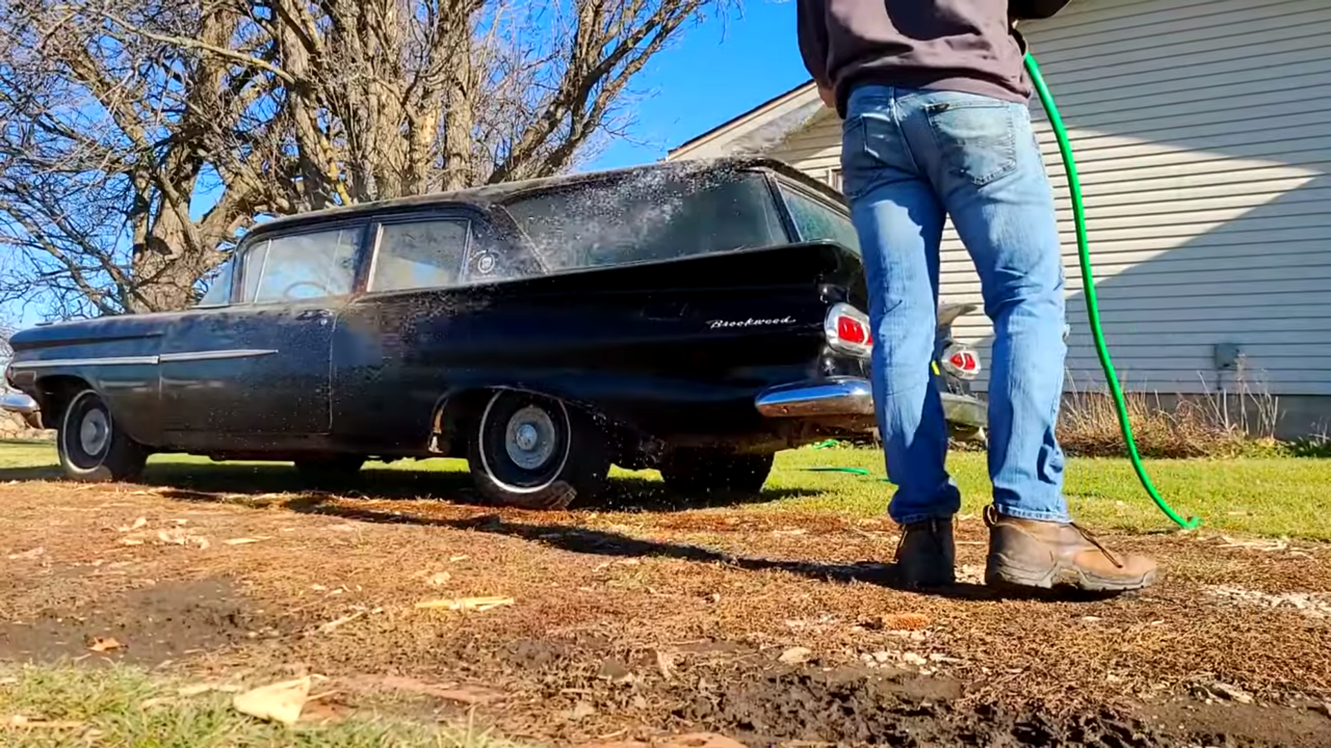 Their latest find is this beautiful 1959 Chevrolet Brookwood station wagon. Even though it's only been five years since it was last washed, it looks as though it's been sitting for a century.