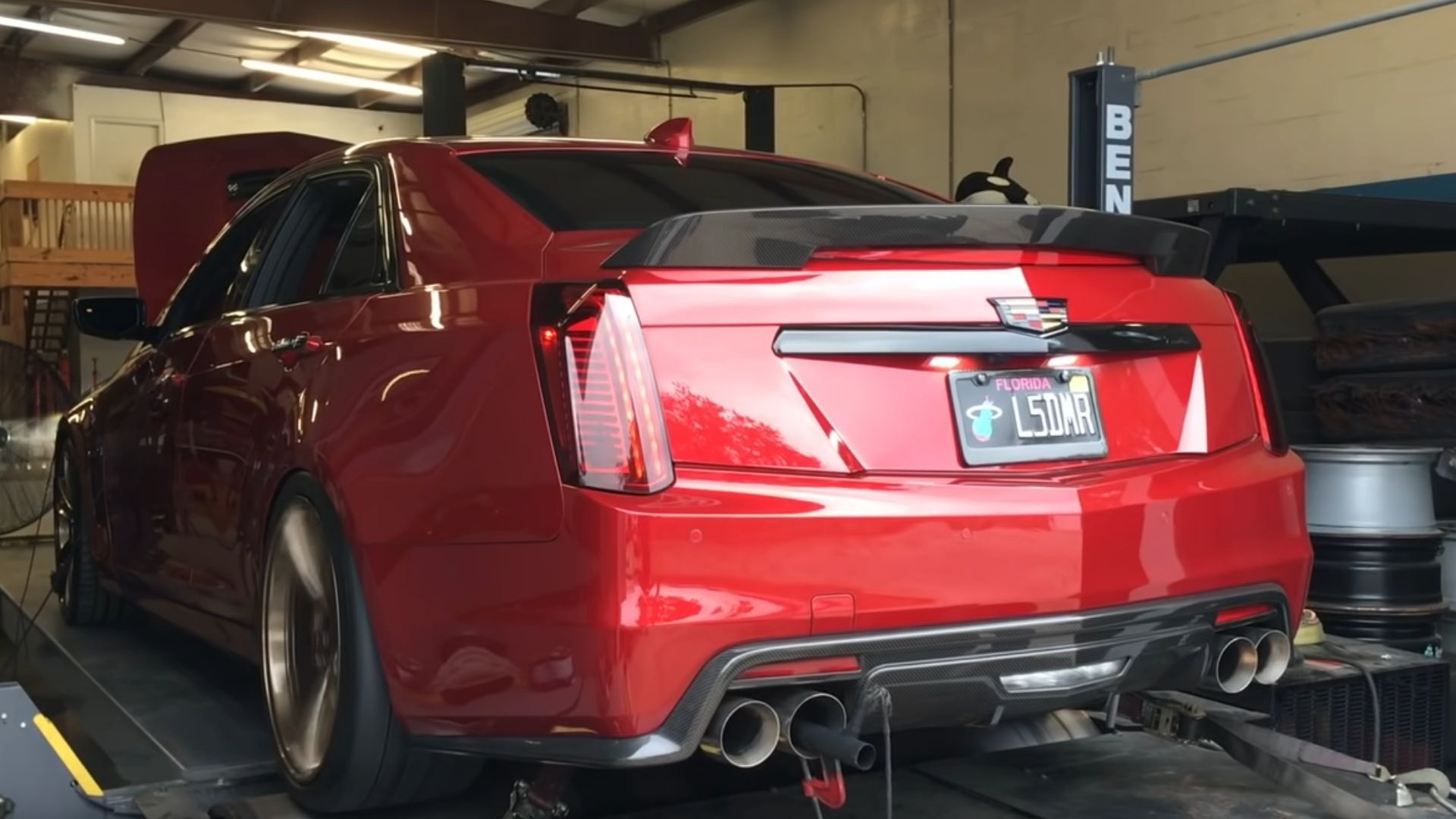 If you decide to watch the video, you get to see a tuned Cadillac CTS-V with a Whipple supercharger, cam, etc. On the dyno it makes 823-whp, which isn’t bad at all. Making some small tweaks to the tuning, Fasterproms was able to make some big gains, getting it close to 900-hp.