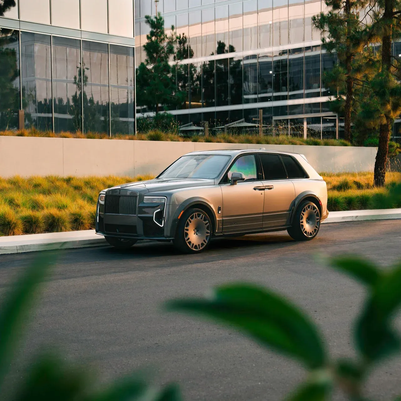 Wheel and tire specifications are outsized even by Cullinan standards. Monoblock M “PLATINUM EDITION” forged wheels measure 10Jx24 in front and 12Jx24 at the rear, wearing 295/30 ZR 24 and 355/25 ZR 24 rubber, respectively. A SportXtra module drops ride height by about 25 millimeters (1 inch) for a lower center of gravity and a more planted stance.