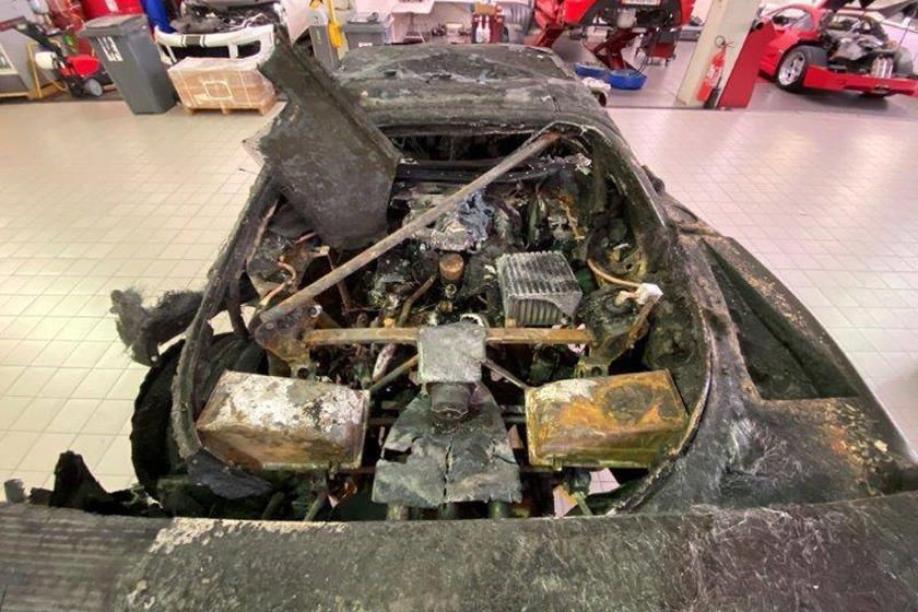 After seeing photos of the rare Ferrari completely ablaze would make anyone believe that the car was a devastating total loss. More images have surfaced of that remained of the charred F40, and they hurt the soul to see. The good news is that this iconic Italian supercar is sitting on the service floor of Ferrari Monte Carlo with rumors that the car will be rebuilt from the ground-up and completely restored.