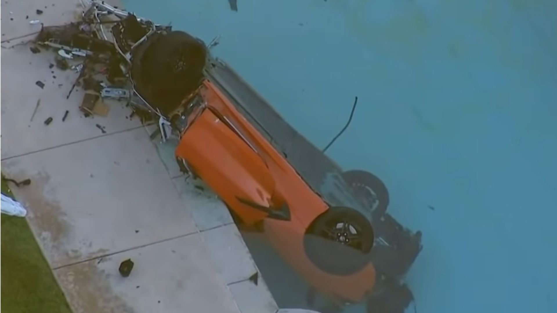 This is sadly an avoidable situation. It sounds like the driver was speeding, probably didn’t know the street very well, then slammed into the curb when the island suddenly made a 90-degree bend. Yeah, it’s a dumb street design, but going too fast sure didn’t help and it probably gave the mid-engine car plenty of momentum to catapult it all the way into the backyard pool.