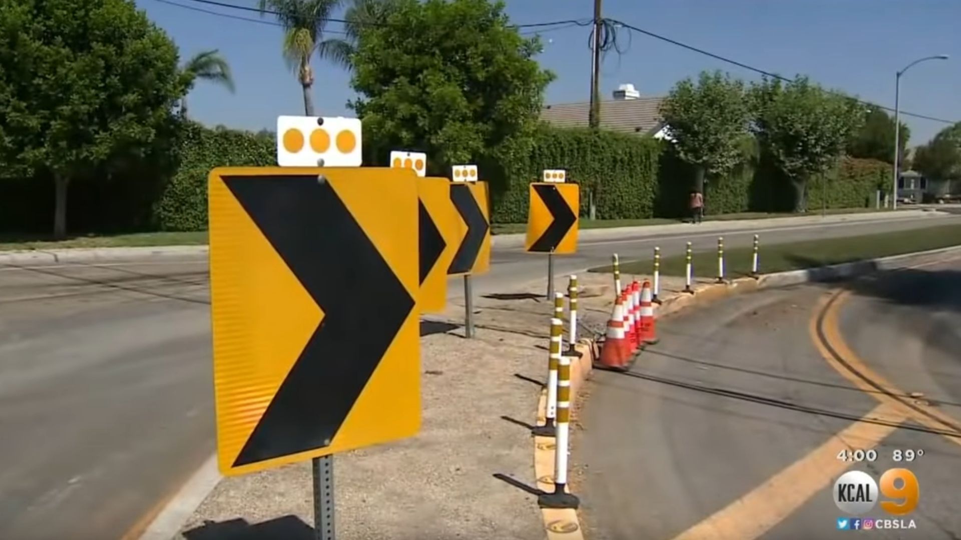 Apparently, neighbors say they see and hear cars hitting the brakes and swerving hard to miss the curb all the time. While the dangerous curb seems to be a problem, there are signs warning about the turn and the median changing direction. This kind of design has been used in cities other than Chino and people seem to manage at least ok, with maybe some cars needing an alignment after an inattentive driver gives their wheel curb rash.