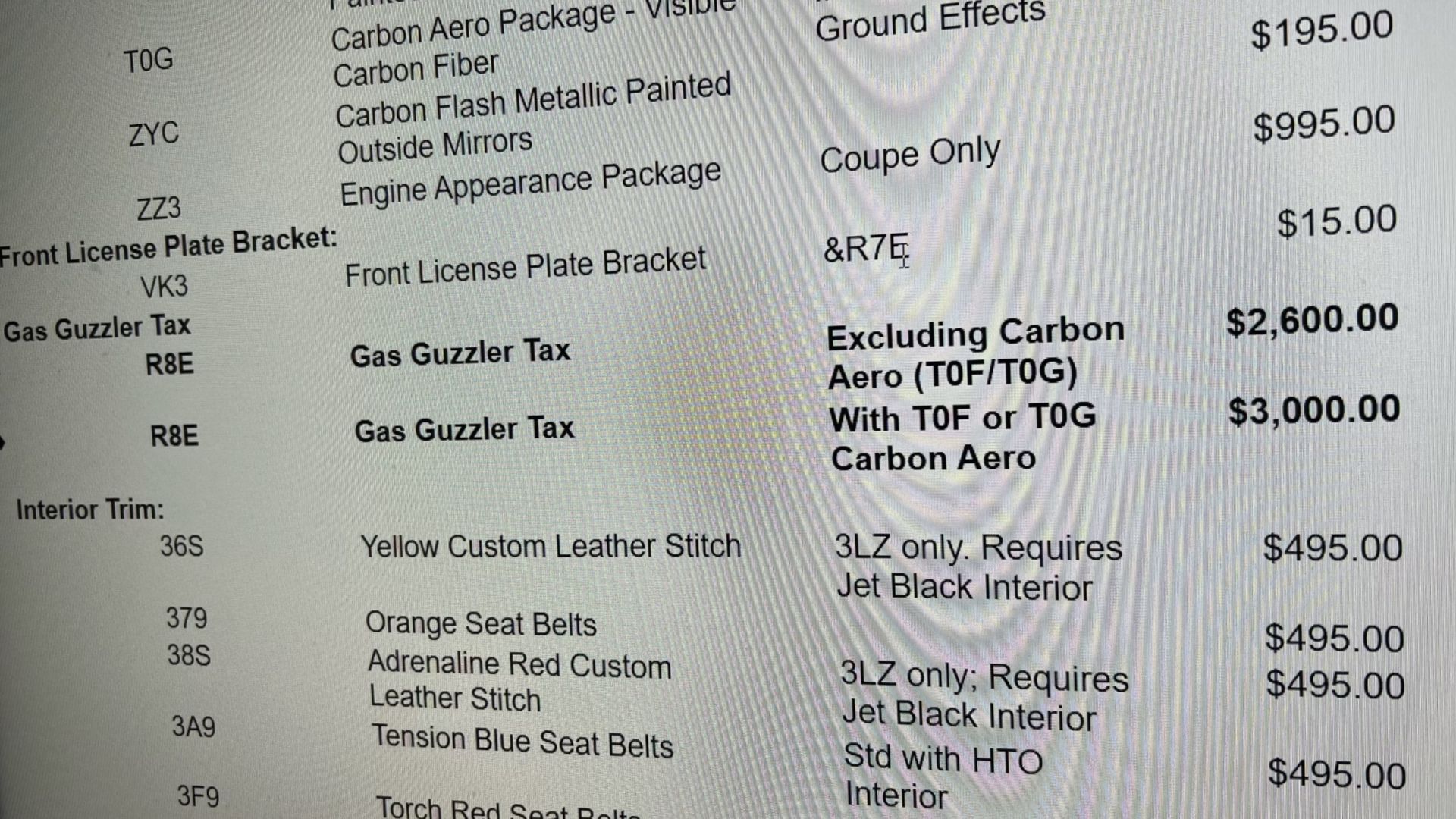 This is all according to a post from MidEngineCorvetteForum.com. One of the founders posted a photo taken of a screen showing the pricing breakdown for the C8Z, and it looks pretty legit. Still, the Gas Guzzler Tax hasn’t been officially announced by Chevrolet, so don’t start thinking this is official.