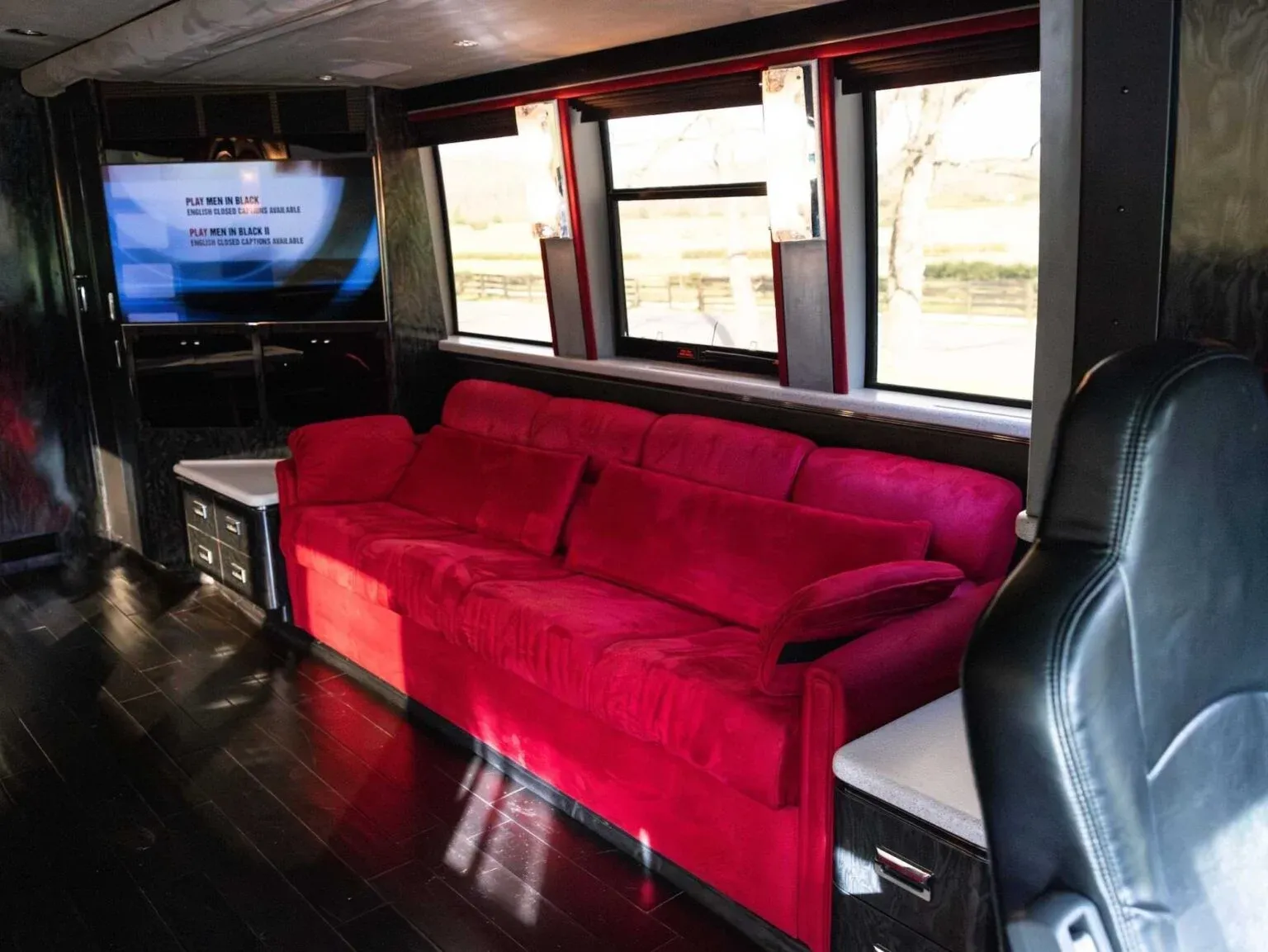 Under Montana’s ownership, the bus was modified to accommodate a band on the road. The rear bedroom was reconfigured into a six-bunk layout, transforming the luxury motorcoach into a functional tour vehicle. The coach now reflects both its origins as a private celebrity retreat and its later role supporting live performances.