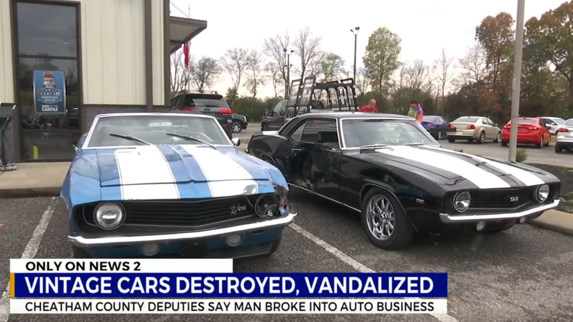 The dealership owner told a local reporter he’s probably out about $40,000 to fix the three Camaros and ‘Cuda. On top of that, to fix the storefront, which includes the doors, he’s looking at another $30,000. He also remarked that the unsophisticated robbery didn’t seem to have been planned out but instead that Wasson likely just saw an opportunity in the moment.