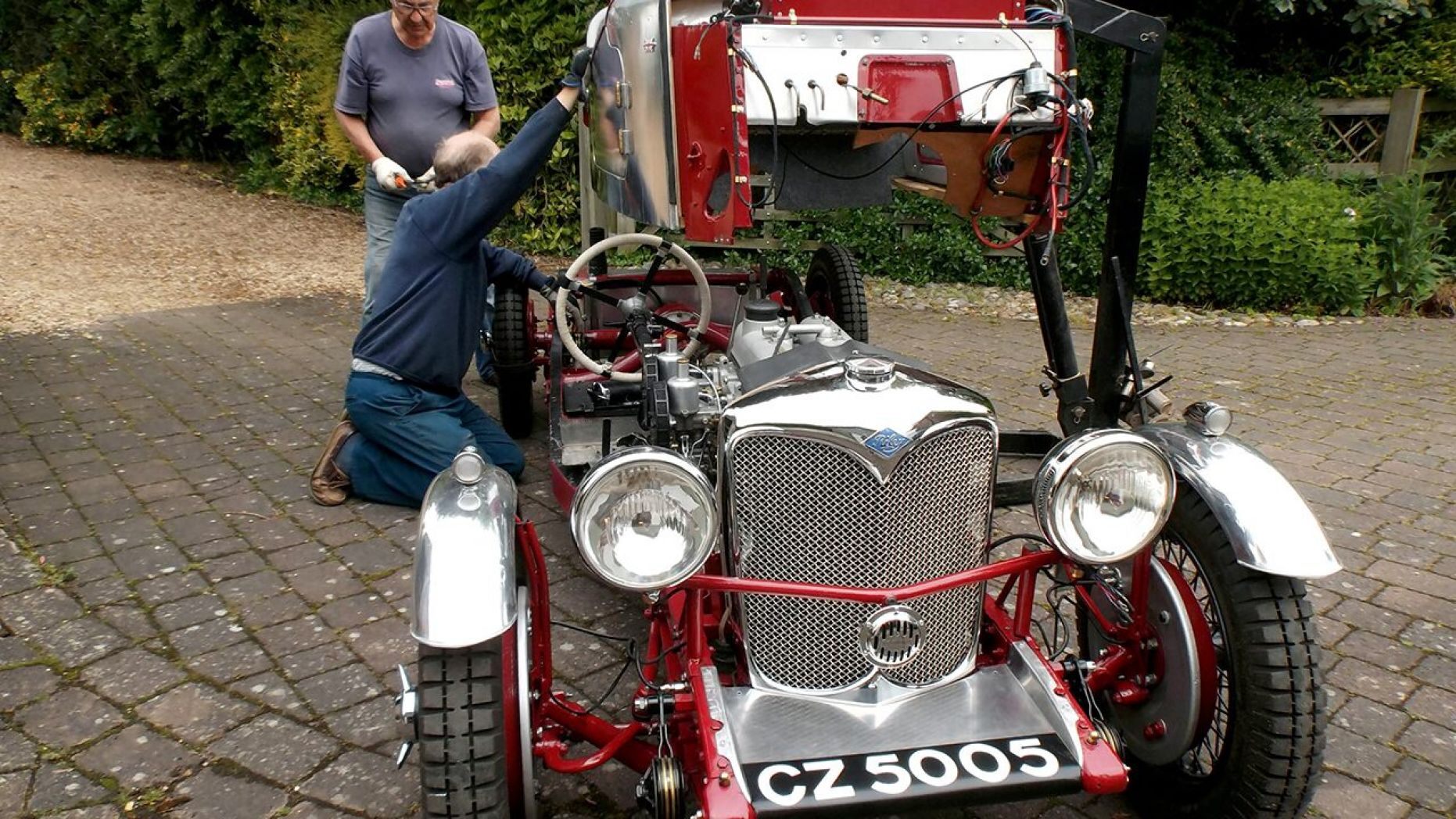 Fountain, a retired rally driver, decided to load up what burnt remains were left his Riley car and loaded it onto a trailer. He then drove to his residence in Sutterton, U.K. where he began the painstaking project of bringing the charred remains of his classic car back to life in a meticulous restoration. The good news was that the chassis survived the fire, so Fountain decided to start building a prototype with materials including wood, cardboard, and scrap metal.
