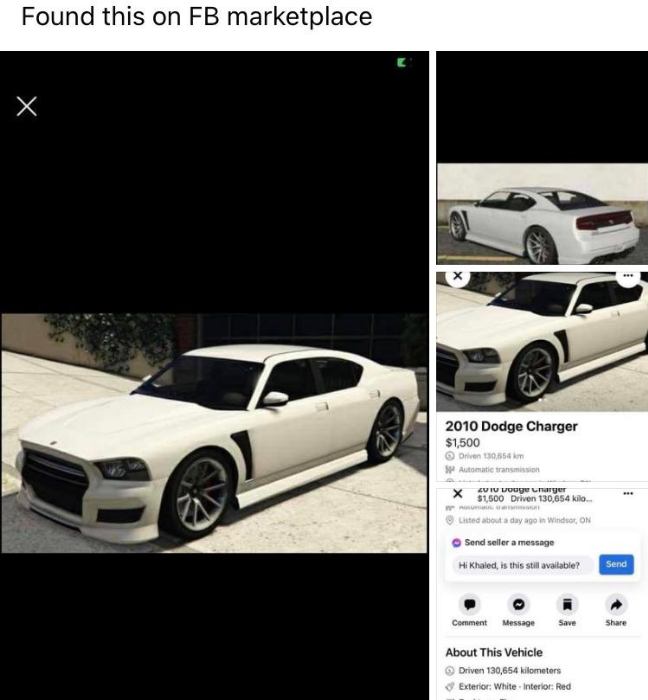 It’s 2021 and someone apparently posted a Dodge Charger from the video game GTA Online for sale on Facebook Marketplace. That’s right, they’re trying to get $1,500 for a digital car you can only use in a game which encourages you to steal, deal drugs, and run from the police. This is so beyond ridiculous we would normally think it’s some sort of prank, but these days it seems like enough people love living in fantasy and denying reality that this listing could be dead serious.