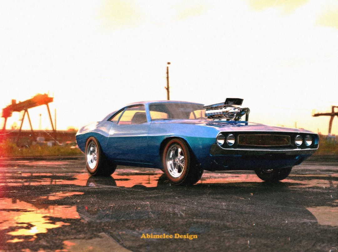 "As many of you, I grew up playing with die-cast toy cars [...], like the original Sweet 16 from 1968. These have always amazed me, with their apparent simple style but thoroughly modified proportions, wacky, but freaking cool," the artist says on his Instagram post that shows off this Challenger creation.