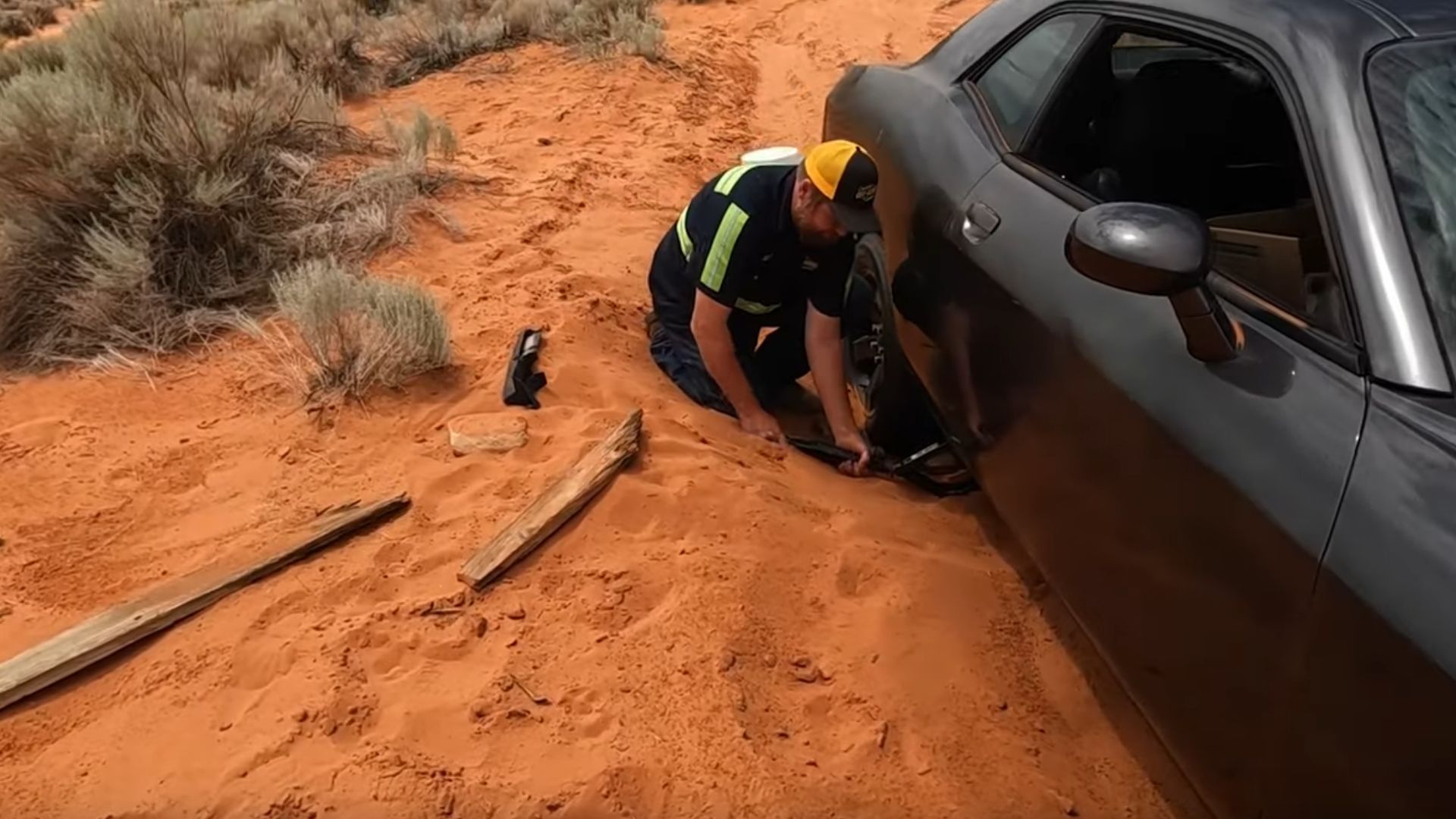It gets even better: the Mopar muscle car was out of coolant so it couldn’t be started up and ran for more than a short burst. Gee, this is a hard one: maybe just maybe this guy who thought off-roading a Challenger damaged the cooling system, causing all the coolant to empty onto the sand as he marveled at how far he was getting on the trail? With any luck a few coyotes will lap it up later.
