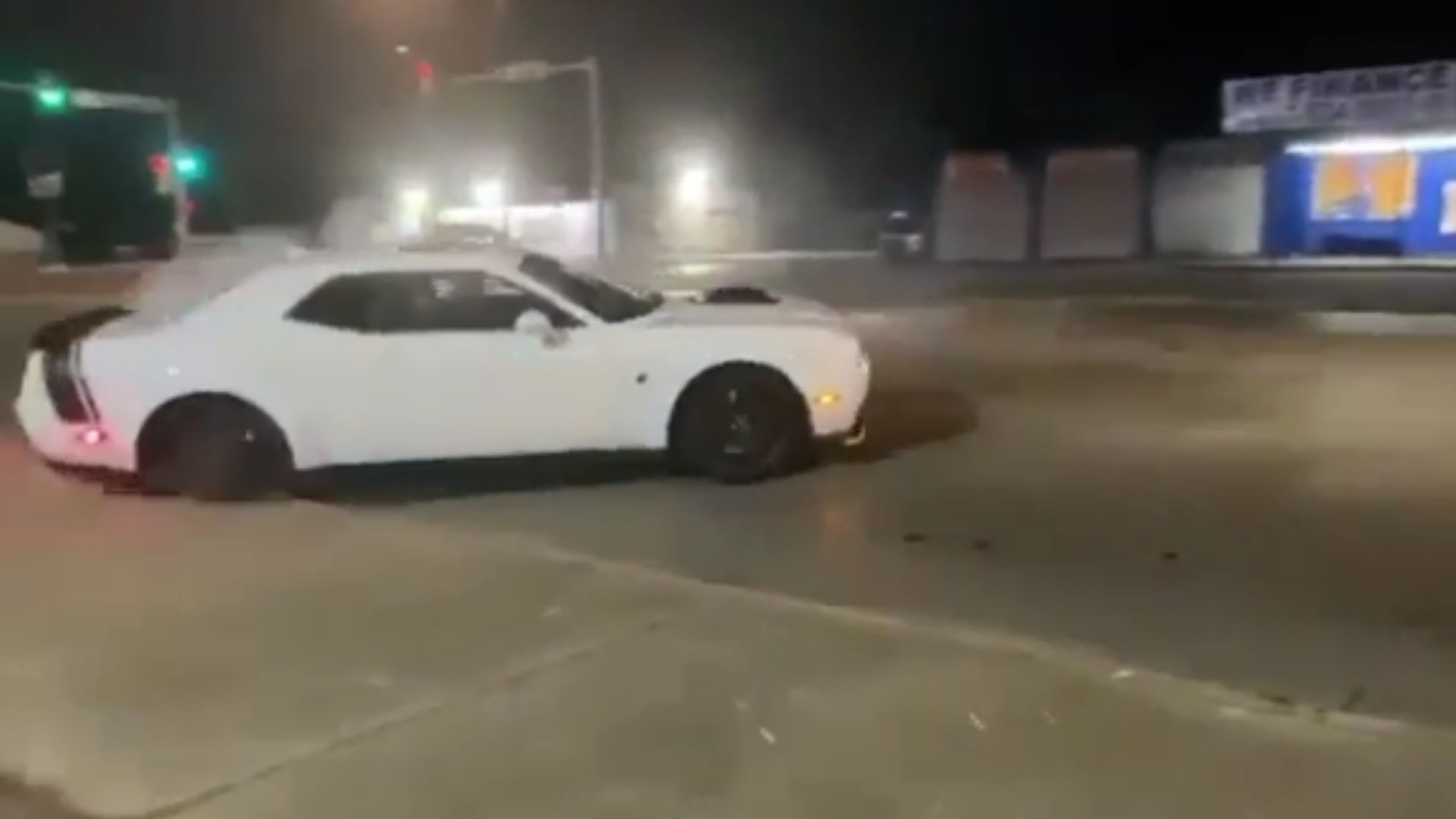 In the video, we see someone in a Dodge Challenger Widebody doing an okay burnout on a public road at night. Doing that kind of stuff on public roads is dangerous, stupid, and selfish, but if you’re going to be all that could you at least do a good burnout, not just a somewhat decent one?