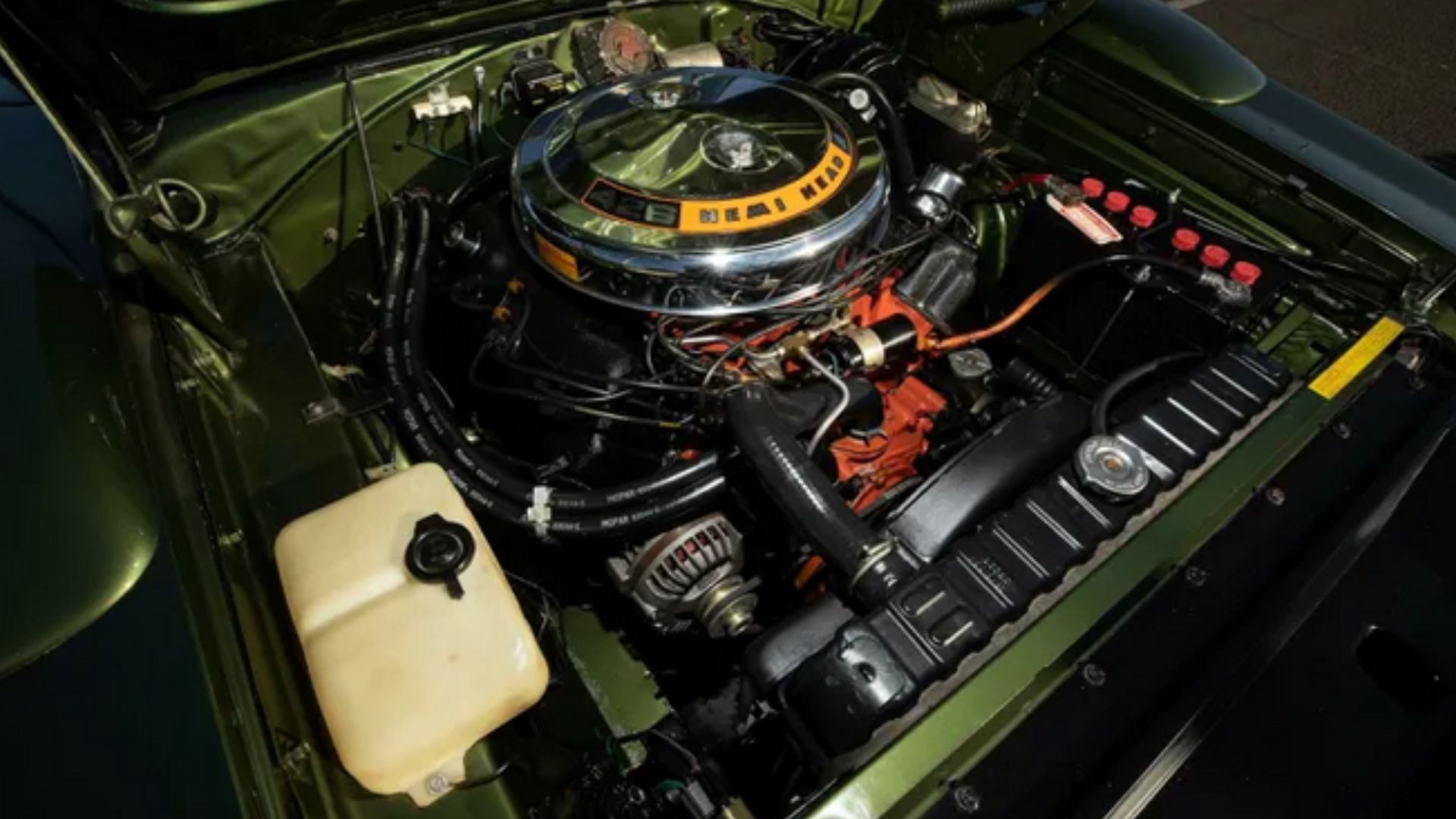As you’ve probably already guessed, this is a numbers-matching example with the original 426 Hemi V8. It even comes with the 4.10 Super Track Pak and dual Carter AFB 4-barrel carbs. But that’s not all, because this thing is loaded with all kinds of bells and whistles like the C6G Green vinyl bucket seats, N51 Max Cooling Package, remote left-hand mirror, A01 Light Package, C16 woodgrain center console, power steering, and so much more. In fact, it’s the most highly optioned Hemi Daytona on the books. Now you have a better idea of why it’s estimated to go for so much.