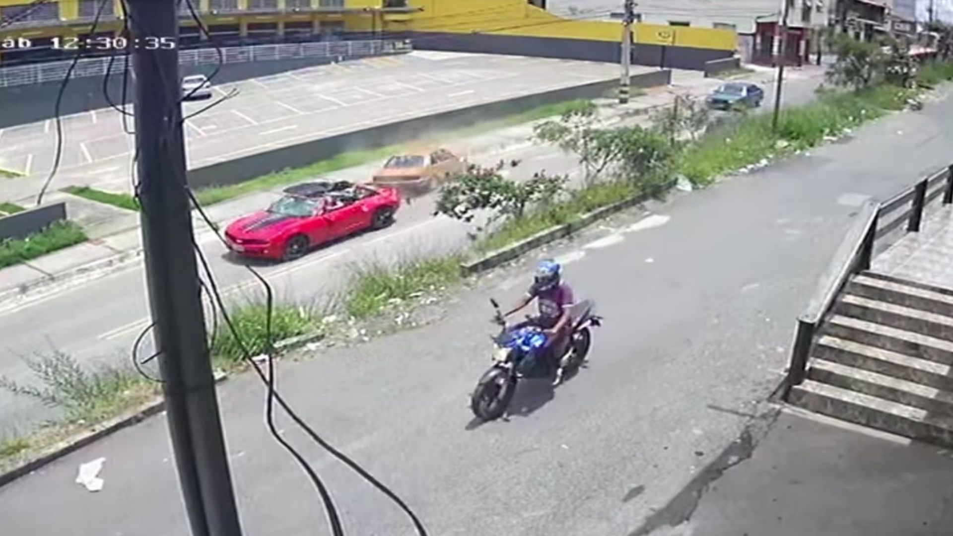 Back on Christmas day in Ribeirão das Neves, Minas Gerais, Brazil a bizarre accident left the roof of a Chevy Camaro peeled off like it was some sort of banana. Surveillance video from a pizzeria shows the whole horrific scene unfold, although the video quality is a little grainy since it isn’t HD, but it’s good enough to portray what happened.
