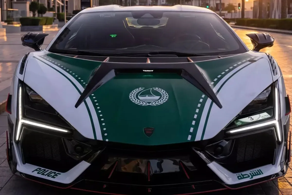 The Revuelto wears Dubai Police’s recognizable white and dark green livery, maintaining visual continuity with the rest of the fleet. It joins a lineup that includes the Bugatti Veyron, Aston Martin One-77, Bentley Continental GT, Lamborghini Aventador, Audi R8, Ferrari FF, Mercedes-Benz SLS AMG, Chevrolet Camaro and Ford Mustang.
