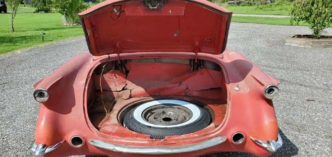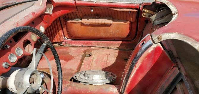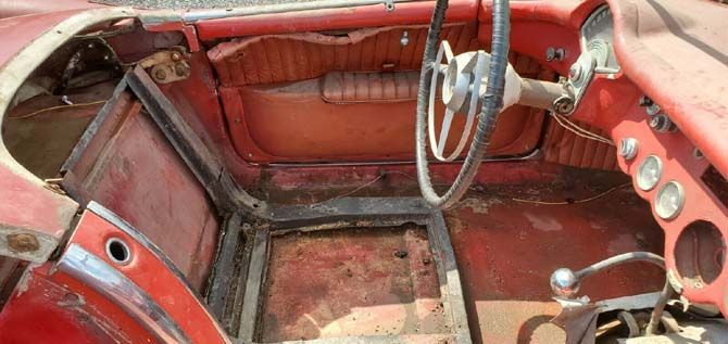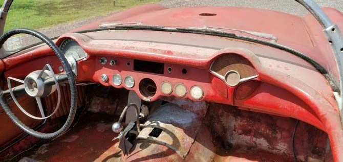 It isn't clear why this Corvette got stashed away back in 1969, but it's clear that the car was stripped to a bare shell sometime over the last 51 years. The listing says that if you don't see a part on this car, that piece is not included with the sale, which means most of the interior is missing as well as some of the exterior trim. The seller also states that the original inline-six engine is "long gone," but the listing doesn't say whether there is another engine under the hood. If there is an engine at all, the Corvette doesn't run or drive, but at least it is said to roll and steer easily.