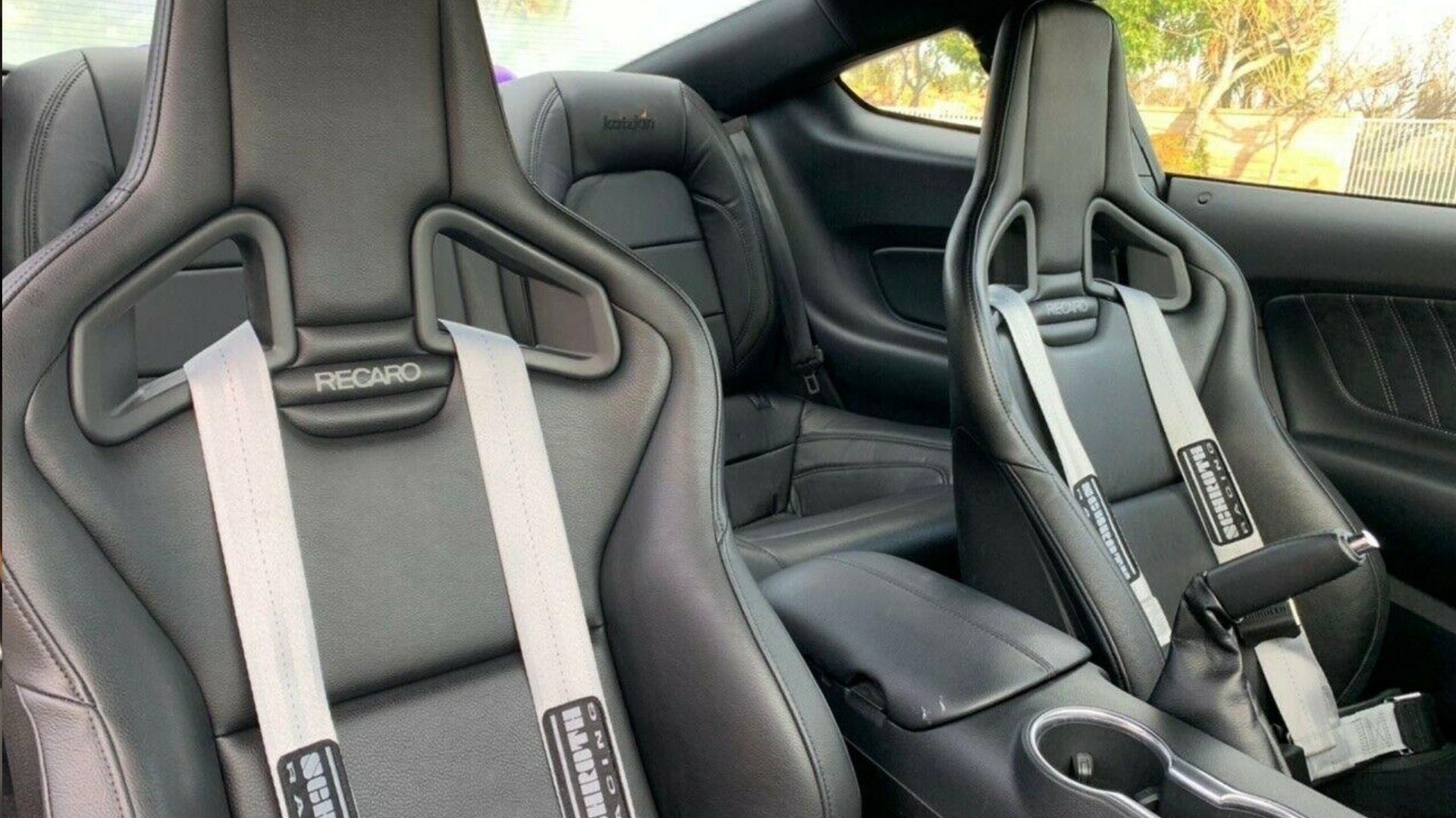 As a consolation for the powertrain, the interior features black Katzkin leather upholstery, Recaro reclining front seats, plus a thumping Kicker Audio system with subwoofers in a custom trunk enclosure. Sure, you won’t be hearing a roaring V8 but you can jam out to your favorite tunes instead, if that’s your pleasure.