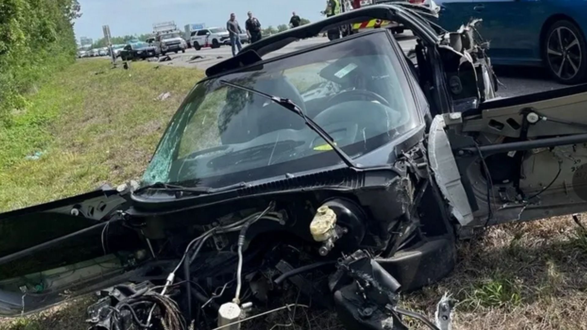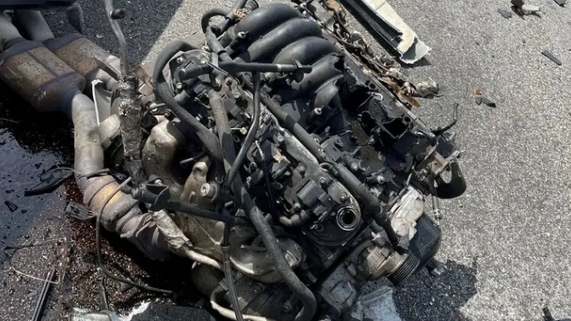 Florida Highway Patrol says the Corvette was traveling at a high rate of speed when the driver lost control and hit the guardrail. It looks like the front and rear of the Chevy took a beating, the engine ejecting itself onto the side of the road as the entire front frame was ripped free. The rear hatch and most of the rear portion of the body is gone, as are the outer door panels. Both airbags in the dash were also obviously deployed.