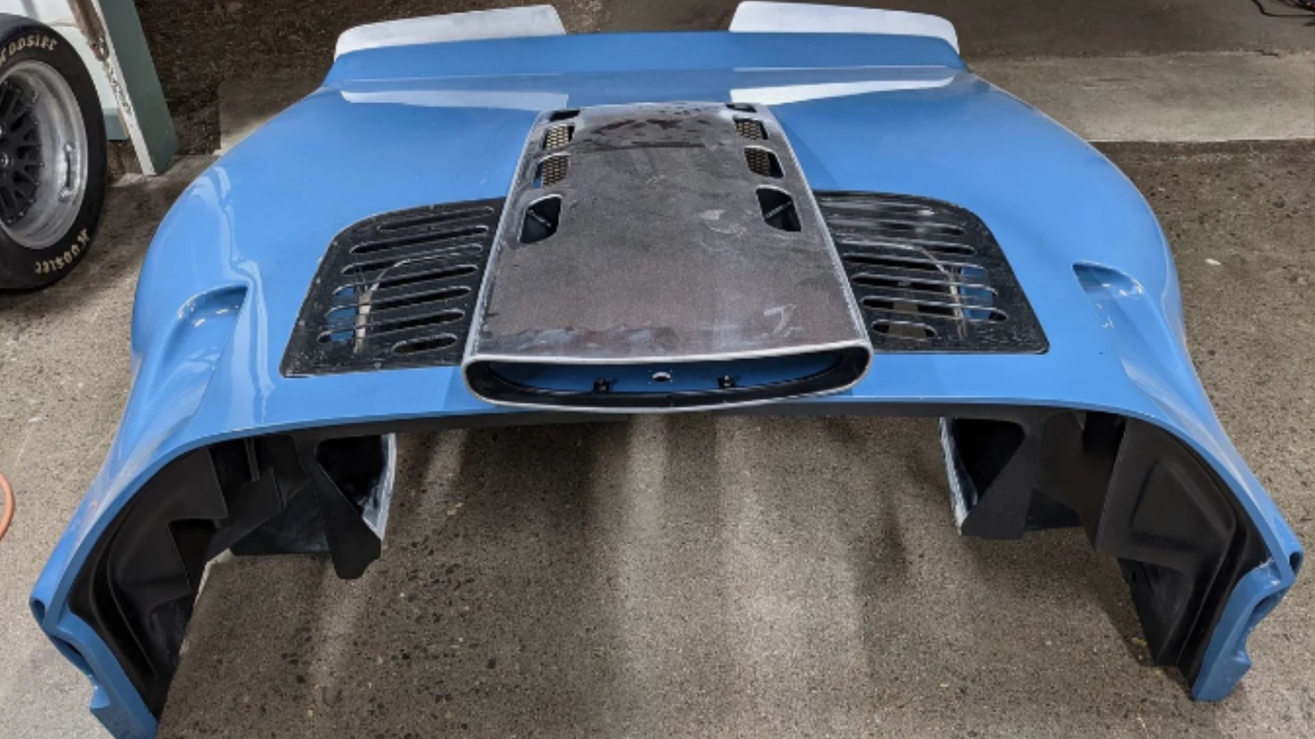 Nestled behind the seats is a modern mill, the Ford 5.2-liter Aluminator V8 crate engine. That means a solid 580-horsepower and a redline at 8,000 rpm, perfect for a race car. Wilwood big disc brakes with 6-piston calipers are also going on the car. Power steering and air conditioning will both be onboard, making the racer more enjoyable to take for a cruise. Plus, a KW front end hydraulic lift kit will prevent accidents when negotiating driveway skirts, speed bumps, etc.
