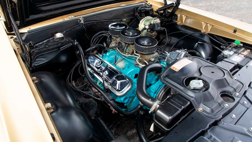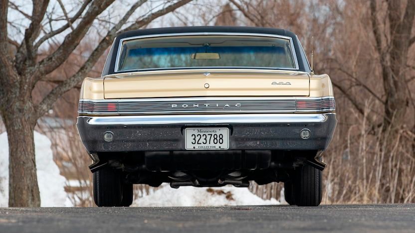 Blanketed in Hurst's Tiger Gold and featuring a black vinyl roof, this unique Pontiac GTO was stuffed with a 389-cubic-inch V8 engine with an output of 360-horsepower. A 4-speed manual transmission connected to a gold-plated shifter sent power down to the rear On top of that, the car was chockfull of other factory options. Behind the doors is a gorgeous interior complete with contrasting white leather upholstery that perfectly complements its gold exterior.