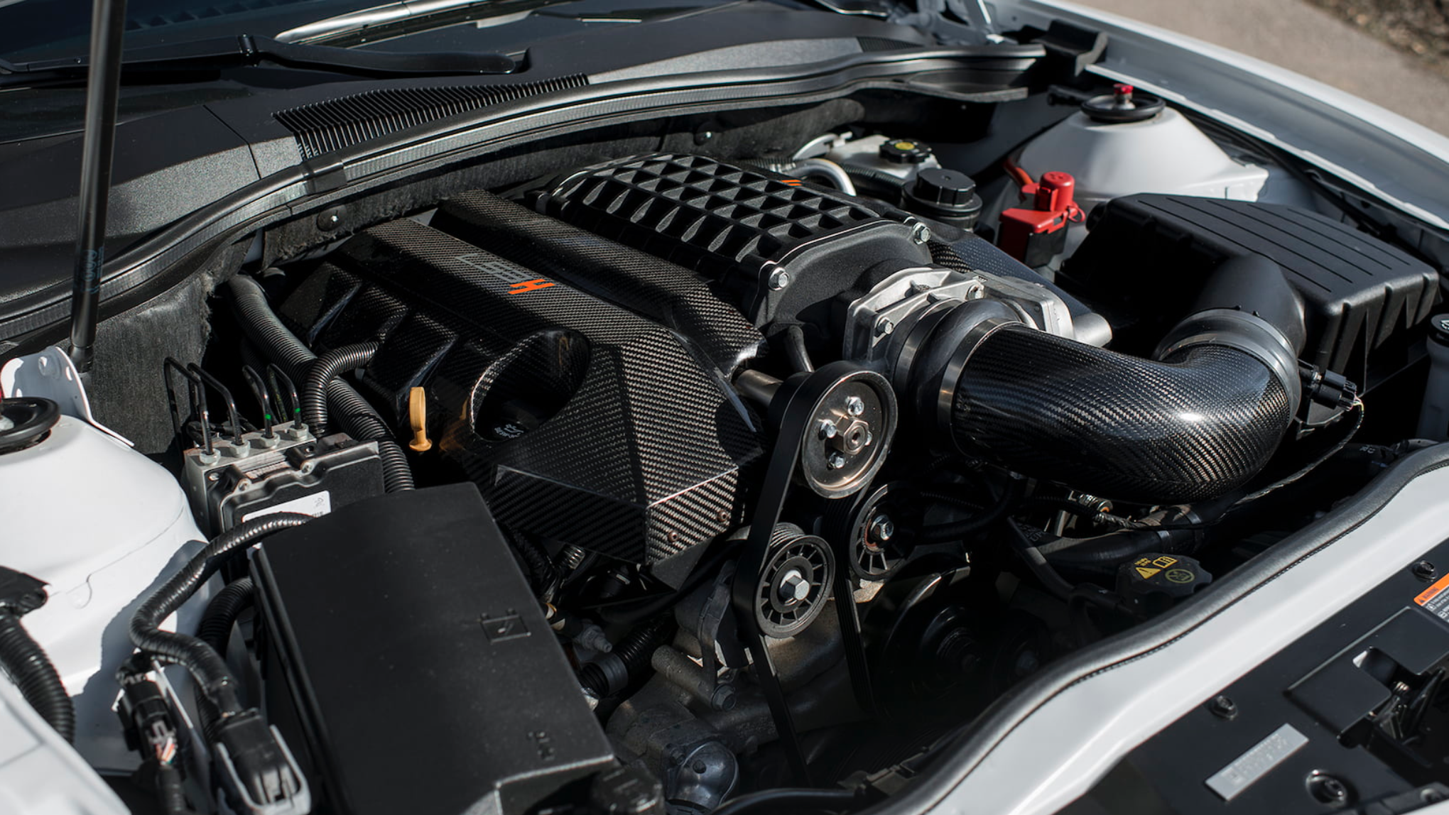 With the 426-horsepower engine from the standard SS paling in comparison to the Hendrick Motorsports vision for the SS, the team managed to squeeze a supercharged LS3 V8 pumping out 588-horsepower and 555 lbs-ft of torque under the hood. Allowing the engine to breath as deeply as needed, a carbon fiber intake tube funnels air to the intake while a stainless steel performance exhaust rings out a signature tone. Transmitting all that power to the rear is a Hurst short throw shifter controlled six-speed manual transmission.