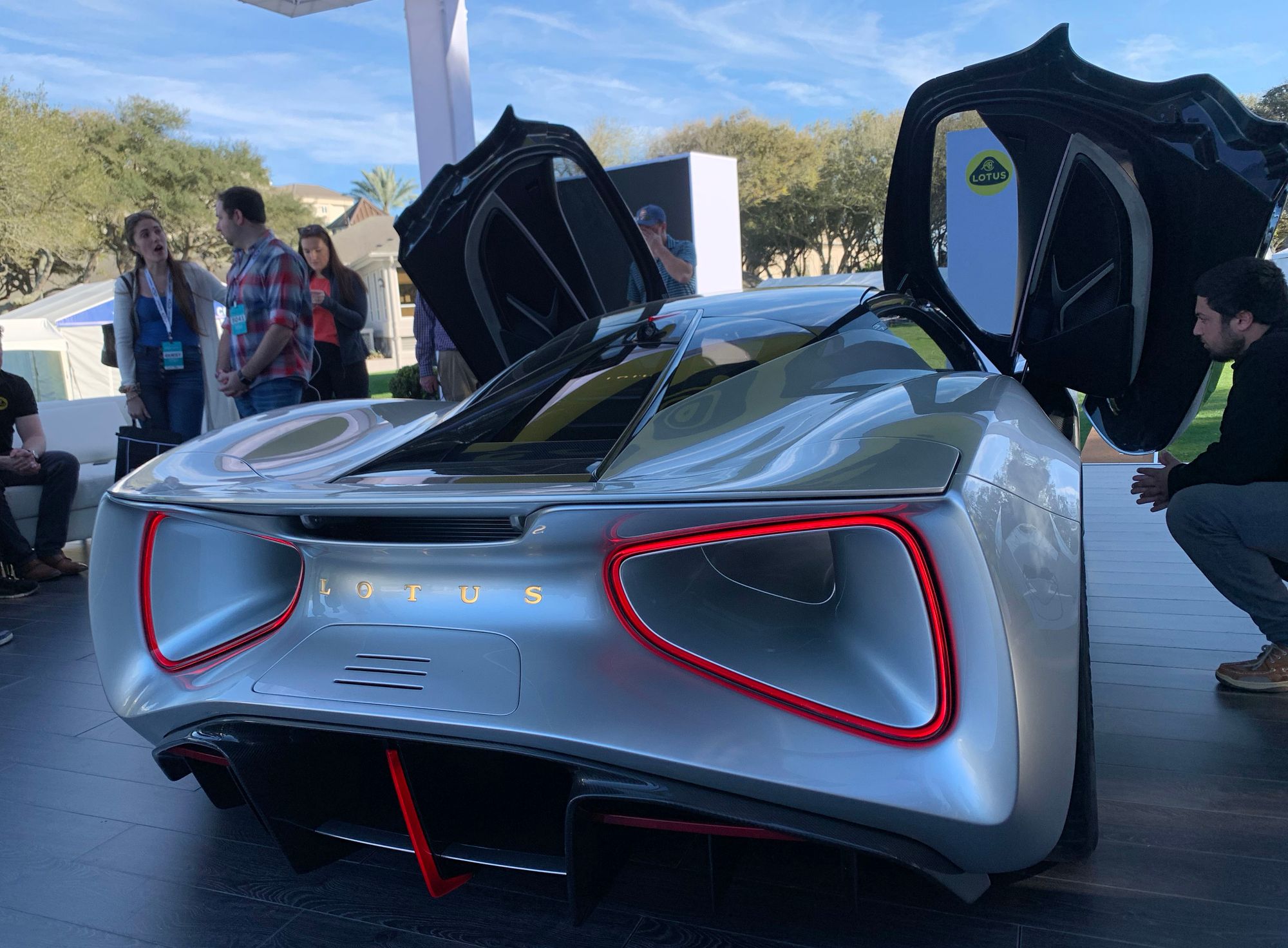 The Evija appears to have the front of an exotic, and a rear that is nothing but futuristic. The taillights are incredibly interesting like nothing seen before, and add a different appeal to the car. Even the doors open up in supercar fashion. This new Lotus is menacing in regards to appearance and performance, and it was a treat to see one on display at Amelia Island this past weekend. As one would expect, there was a nonstop crowd around the car.