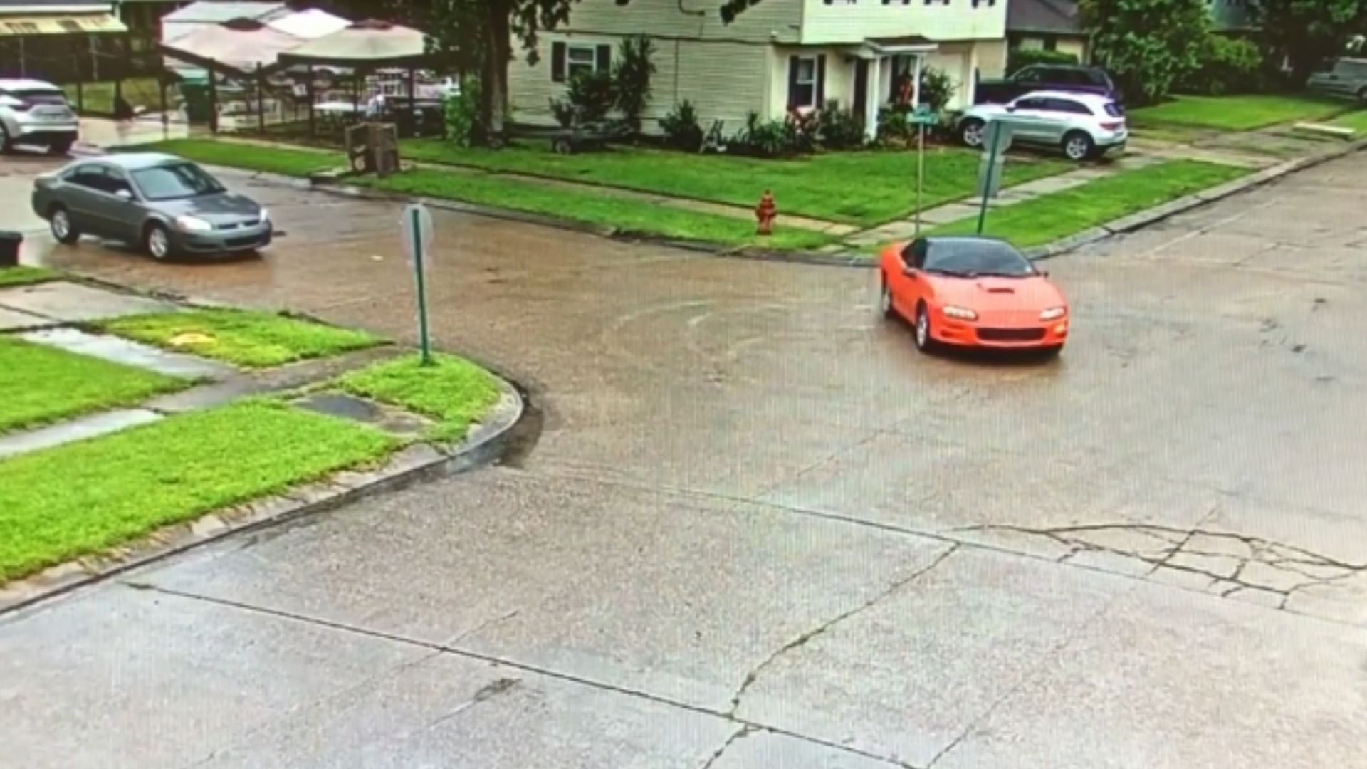 After someone called the sheriff’s office to report the crime, which we’re sure just left the neighborhood just reeling, officers responded to investigate. Upon reviewing the surveillance footage and noting the orange 1999 Camaro then went looking for it.