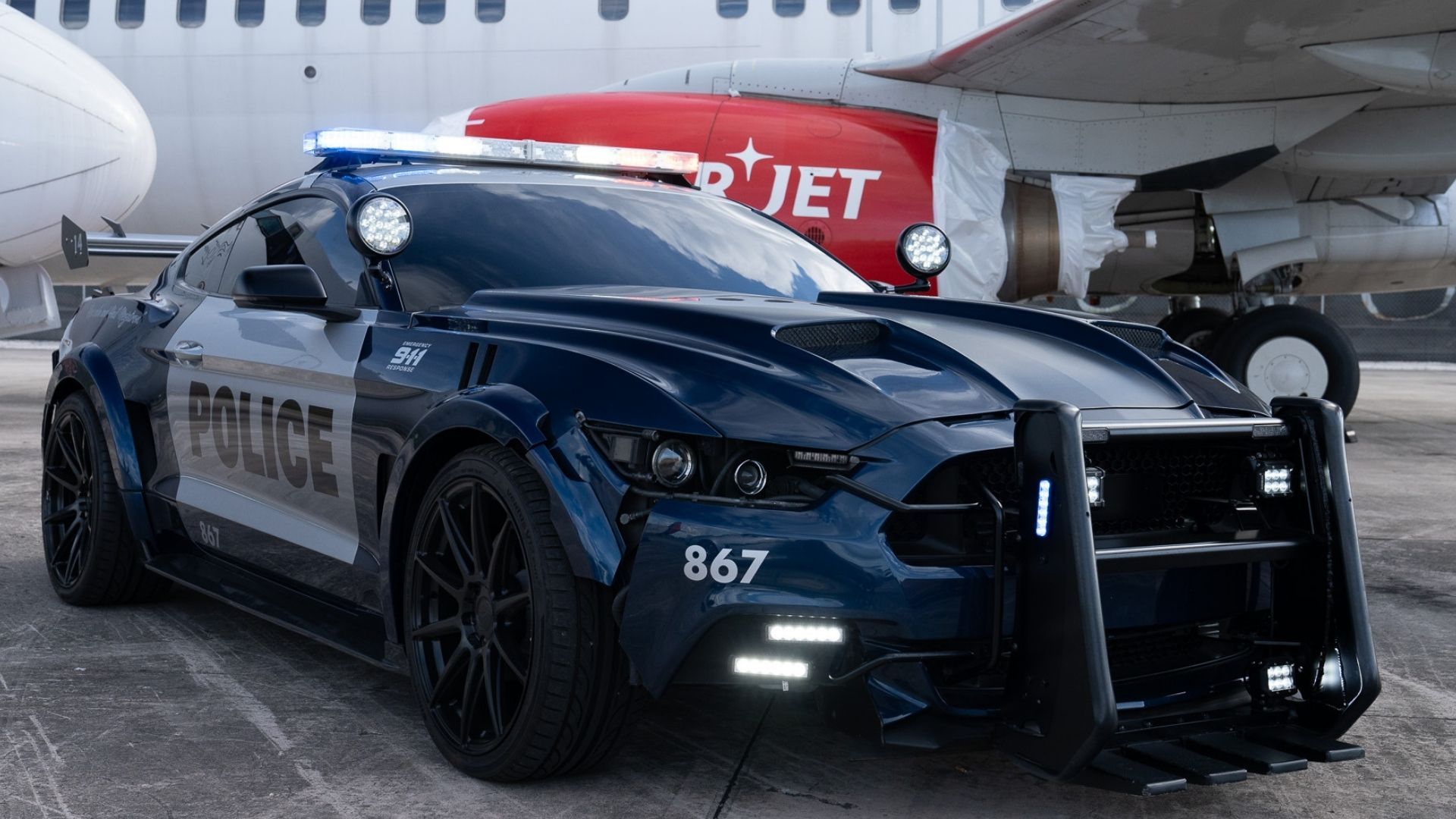 Next up we have a 2016 Ford Mustang GT police car which was Barricade. It was on screen quite a bit in Transformers The Last Knight. The lights on the car all work, plus there are ram bars, aggressive aero mods, and other customizations unique to the build.
