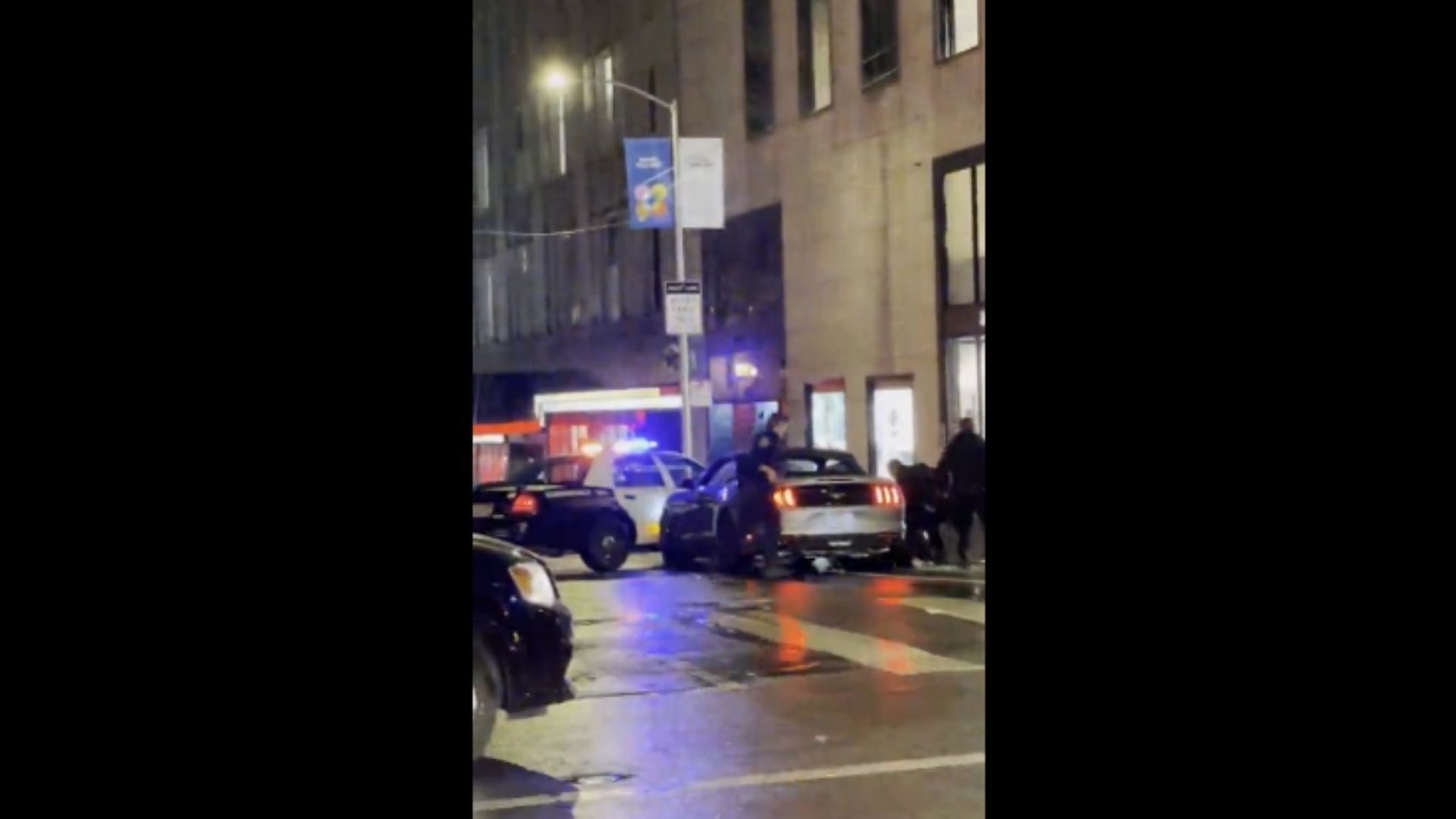 You might have already heard about the dramatic heist at the Louis Vuitton store in San Francisco over the weekend. That and other stores in Union Square were robbed in a smash and grab rush by dozens of people who carried all kinds of merchandise to their waiting cars, then took off. Police were able to arrest a few people, including the driver of this Ford Mustang, which was caught on camera by a bystander.