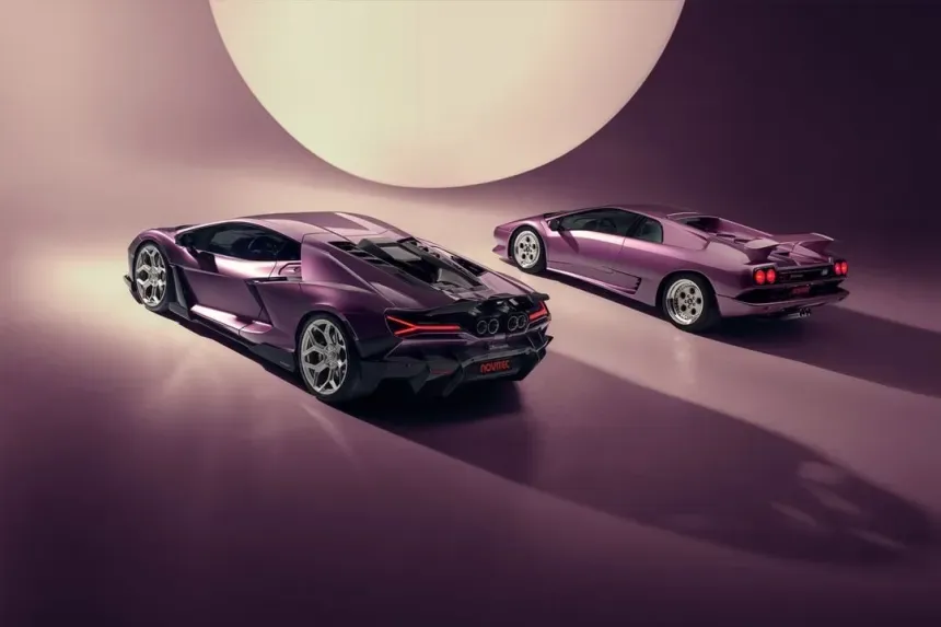 A newly revealed Lamborghini Revuelto modified by Novitec is drawing attention for its understated yet striking approach to supercar tuning. Shared recently on social media, the vehicle stands out in a satin-like purple finish complemented by black accents, presenting a bold yet refined visual identity. In several images, the car appears alongside a classic Lamborghini Diablo, highlighting a blend of modern performance and heritage design.
