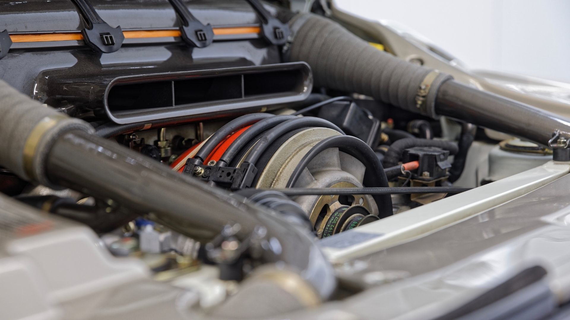Also notable, the Porsche 959 was the first production vehicle to use a biturbo boxer engine with sequential turbocharging, cutting the notorious turbo lag. The Sport models feature larger turbos for more boost and thus more power. To save weight, the S lacked automatic AC, a central locking system, electric windows, passenger side mirror, and rear seats. The self-leveling suspension was also deleted, making it more of a track weapon.