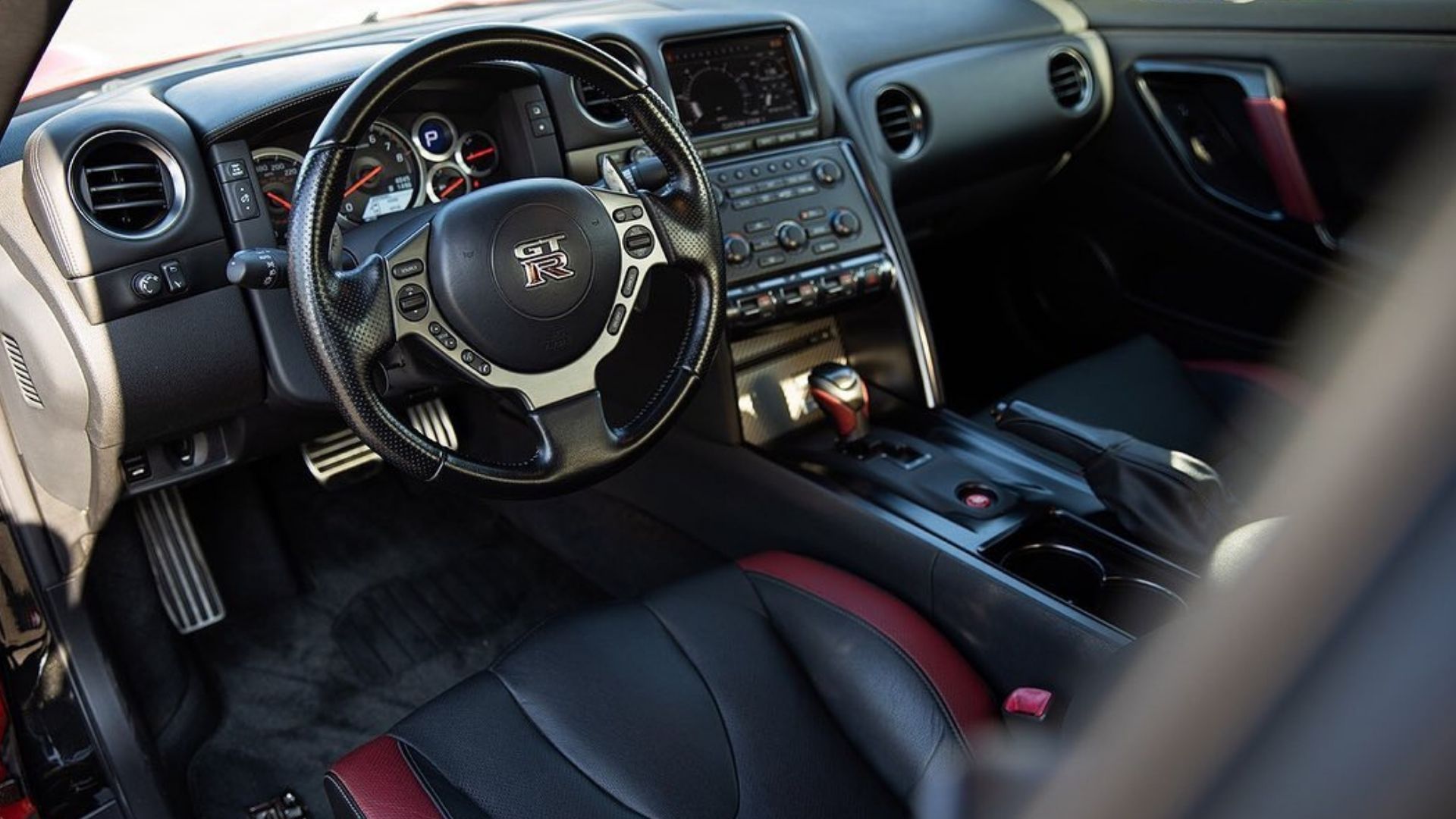 Inside, everything about this GT-R Black Edition is stock. That means the factory Recaro steering wheel and Recaro front seats with red accents. With how little wear shows in the pictures, the mileage claim seems believable.