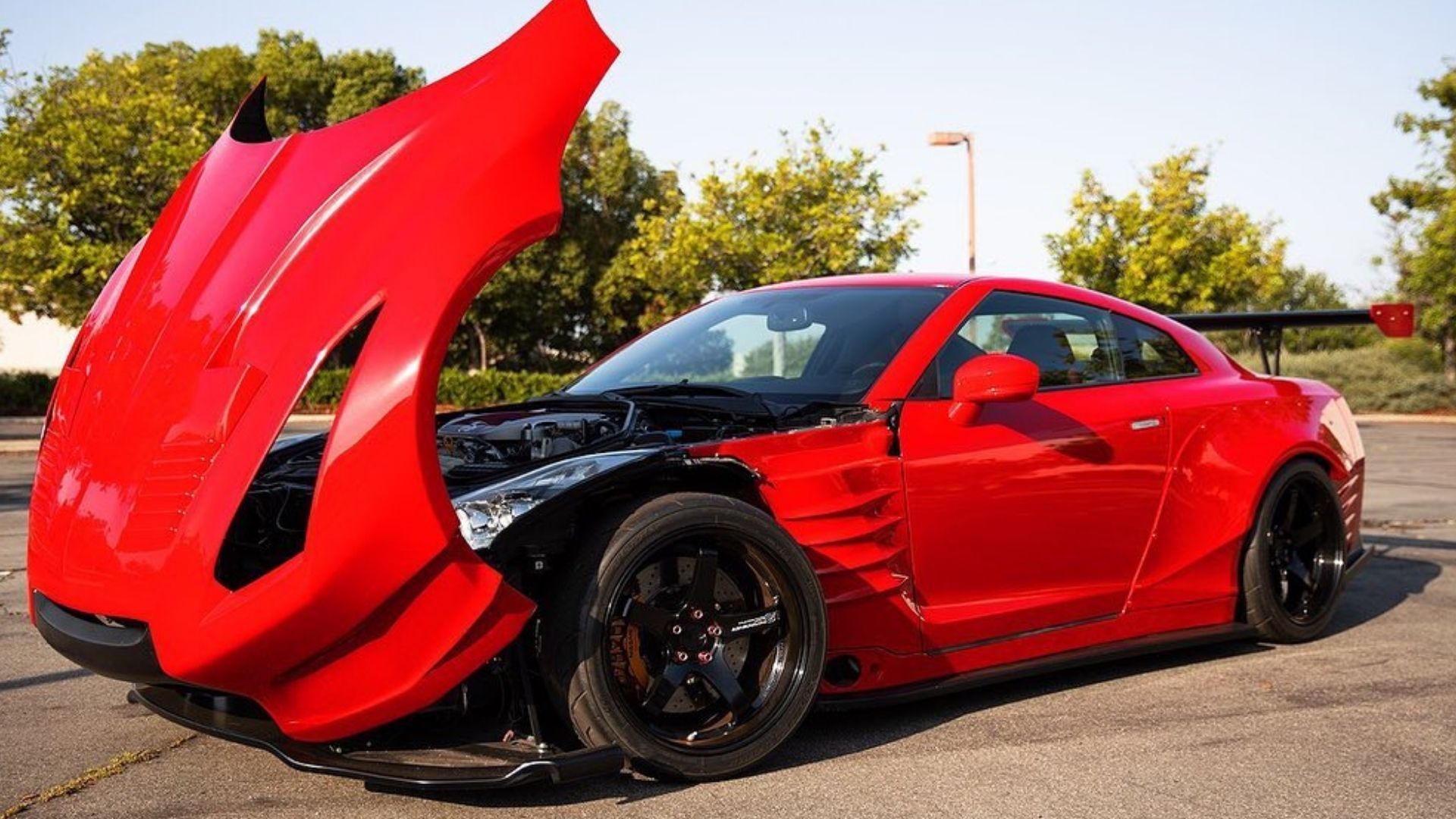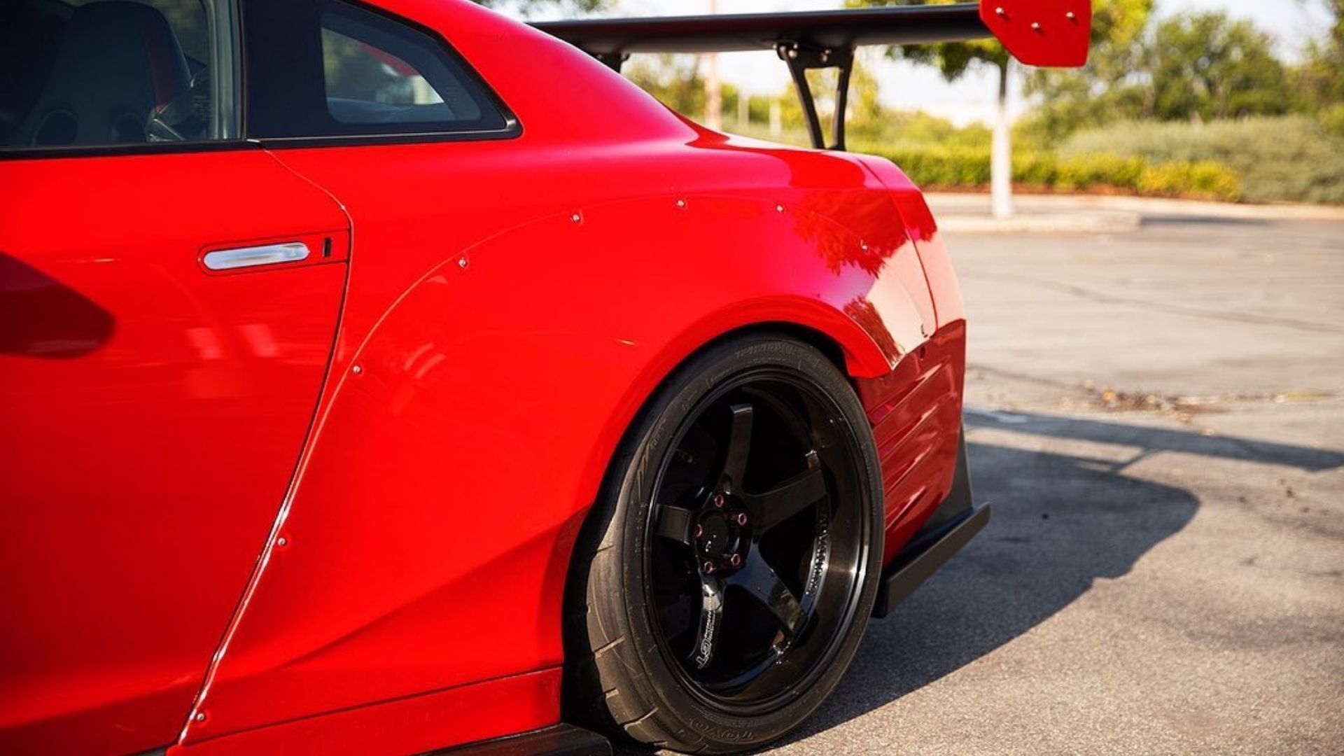 This car was posted on Facebook by GReddy Performance Products on its page. That’s not unheard of, but these guys aren’t just throwing up whatever to see if it sells, so you know this GT-R is special. Plus, it’s painted Ferrari Rosso Corsa Red with semi-gloss black accents for a strong statement.