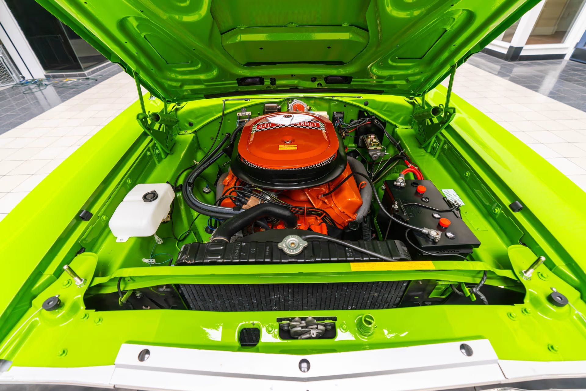 Finished in the vivid FJ6 high-impact green known as Sassy Grass, the car stands out visually as well. The color was offered only during the 1970 and 1971 model years, adding another layer of exclusivity. The finish seen today is the result of a comprehensive restoration that also refreshed the interior and engine bay to near-show condition.