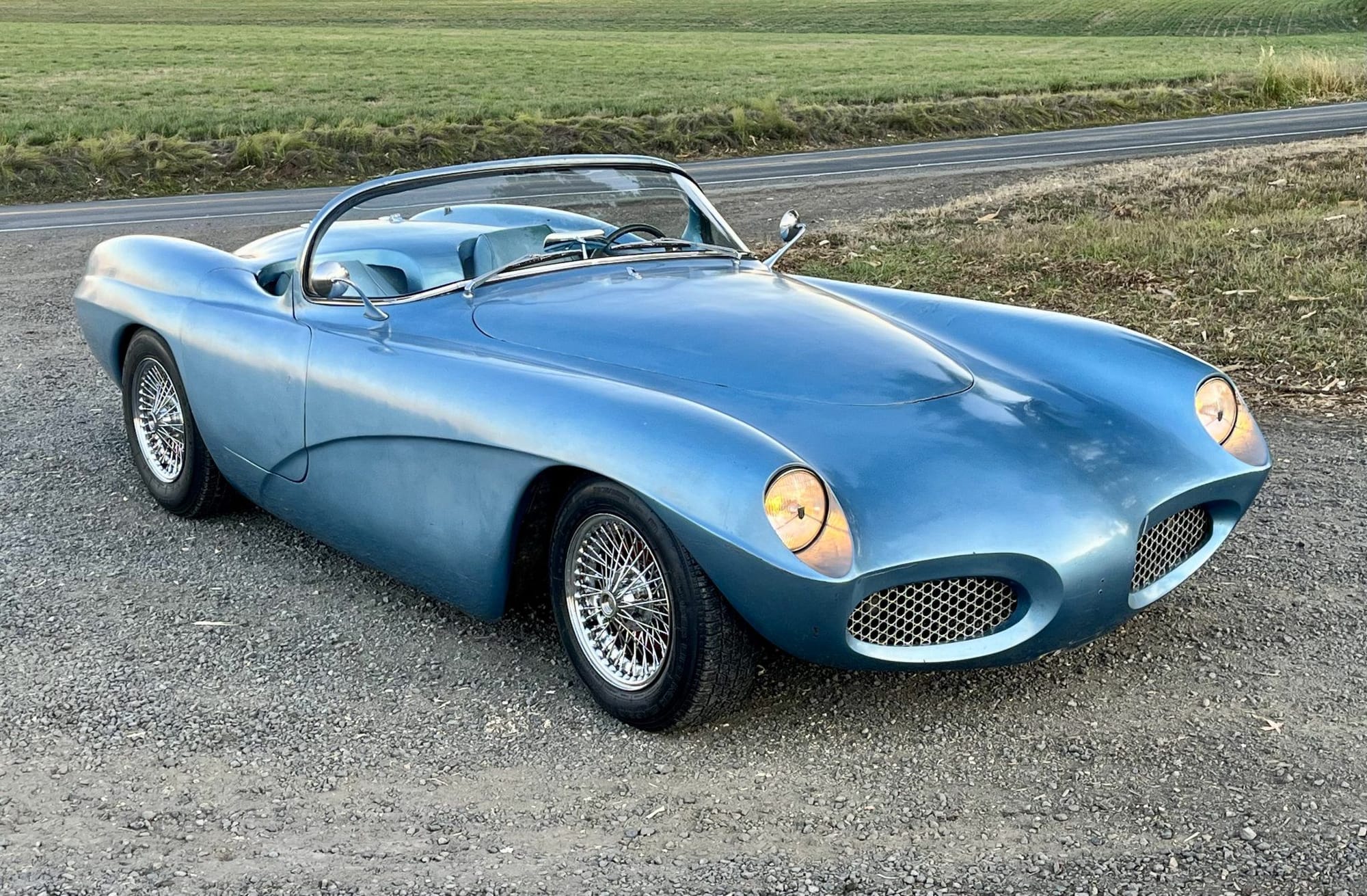 The Conquest rides on a shortened 1952 Ford chassis, its lightweight fiberglass body finished in blue with matching blue vinyl interior. Designed for home assembly, LaDawri bodies were fitted to donor frames and drivetrains by builders, meaning no two cars were exactly alike. This particular example combines period engineering and individual craftsmanship, featuring a C4 three-speed automatic transmission and a Ford 9-inch rear axle with Positraction.