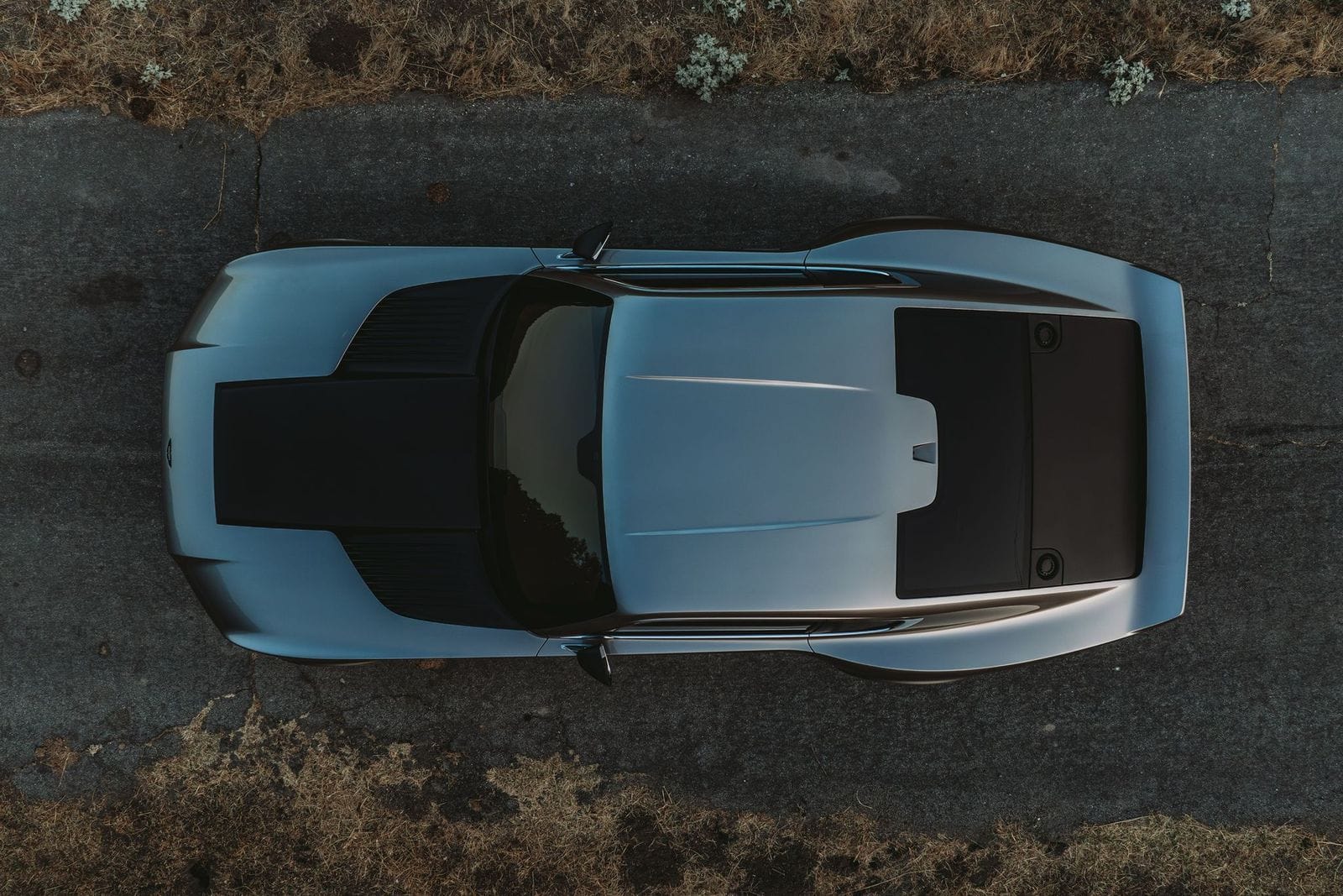 One-off, three-piece centerlock wheels—developed with designer Gary Ragle and HRE—pay homage to the factory look. Exterior finish is BASF Glasurit Double-0 Silver with Nuclear Olive Green accents. Trim and brightwork were CNC-milled from billet aluminum or 3D-printed in stainless steel.