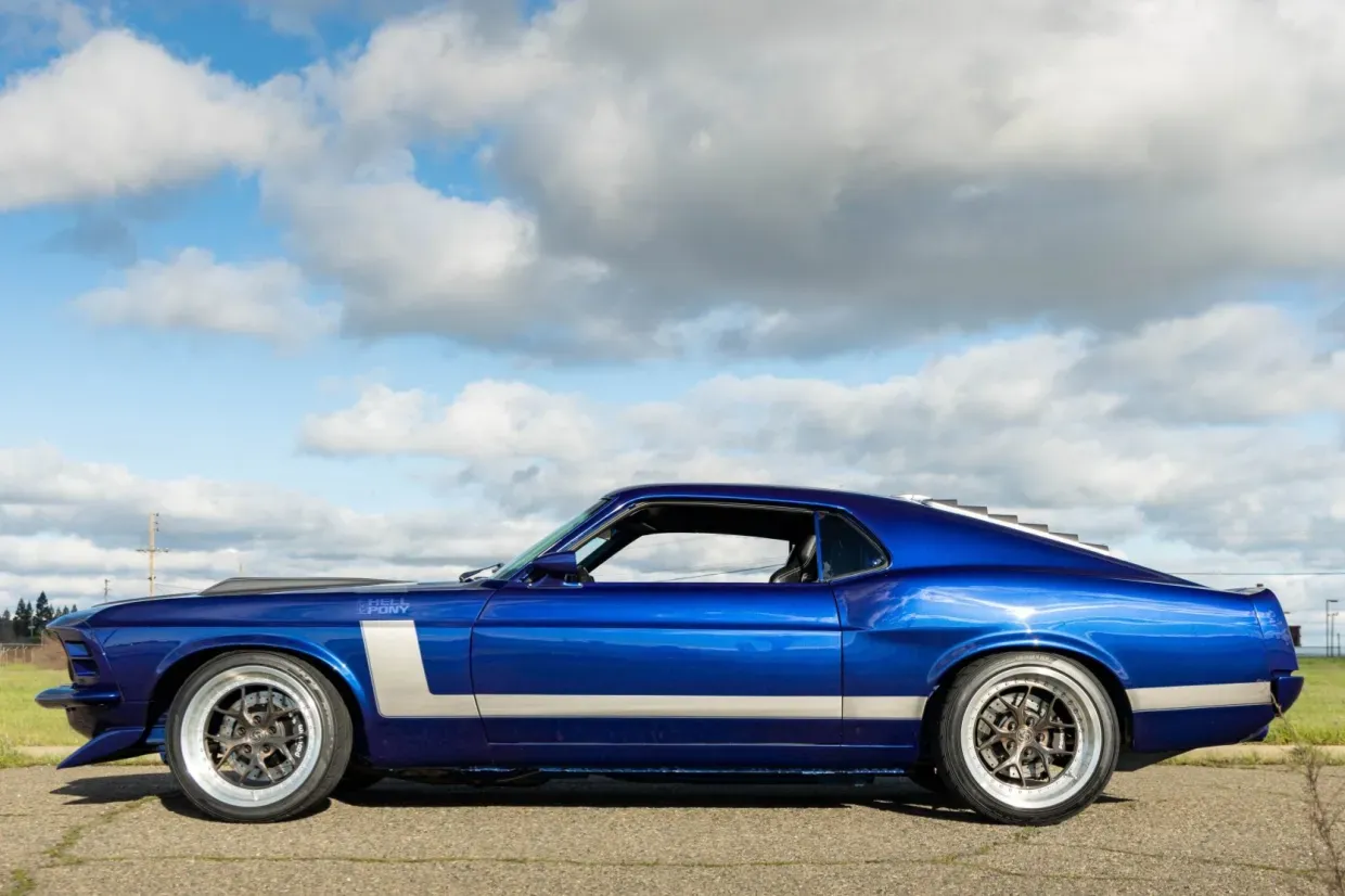 A custom-built 1970 Ford Mustang SportsRoof known as “Hell Pony” is drawing strong interest as its auction approaches the final days, with bidding currently at $53,000. The car represents a modern reinterpretation of the classic Mustang fastback, combining contemporary powertrain technology with extensive chassis, suspension, and interior upgrades.
