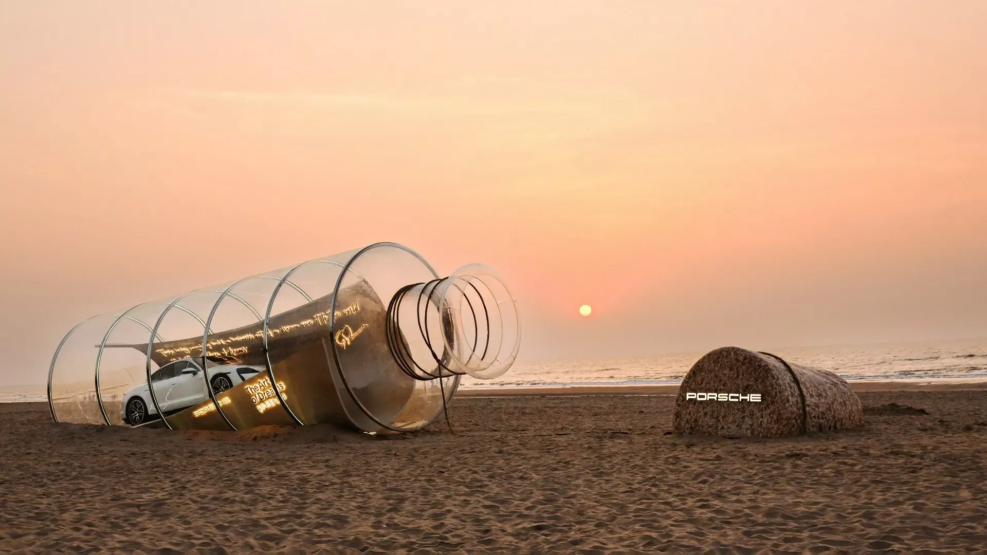 One of the most attention-grabbing exhibits is titled "Taycan In A Bottle." This installation presents a stunning visual representation of Porsche's cutting-edge all-electric Taycan model, meticulously crafted within the confines of a glass bottle. This artful creation encapsulates the essence of the Taycan's sleek design, futuristic technology, and environmentally friendly powertrain. It serves as a metaphorical statement about Porsche's commitment to sustainable mobility and its ability to transform conventional notions of automotive engineering.