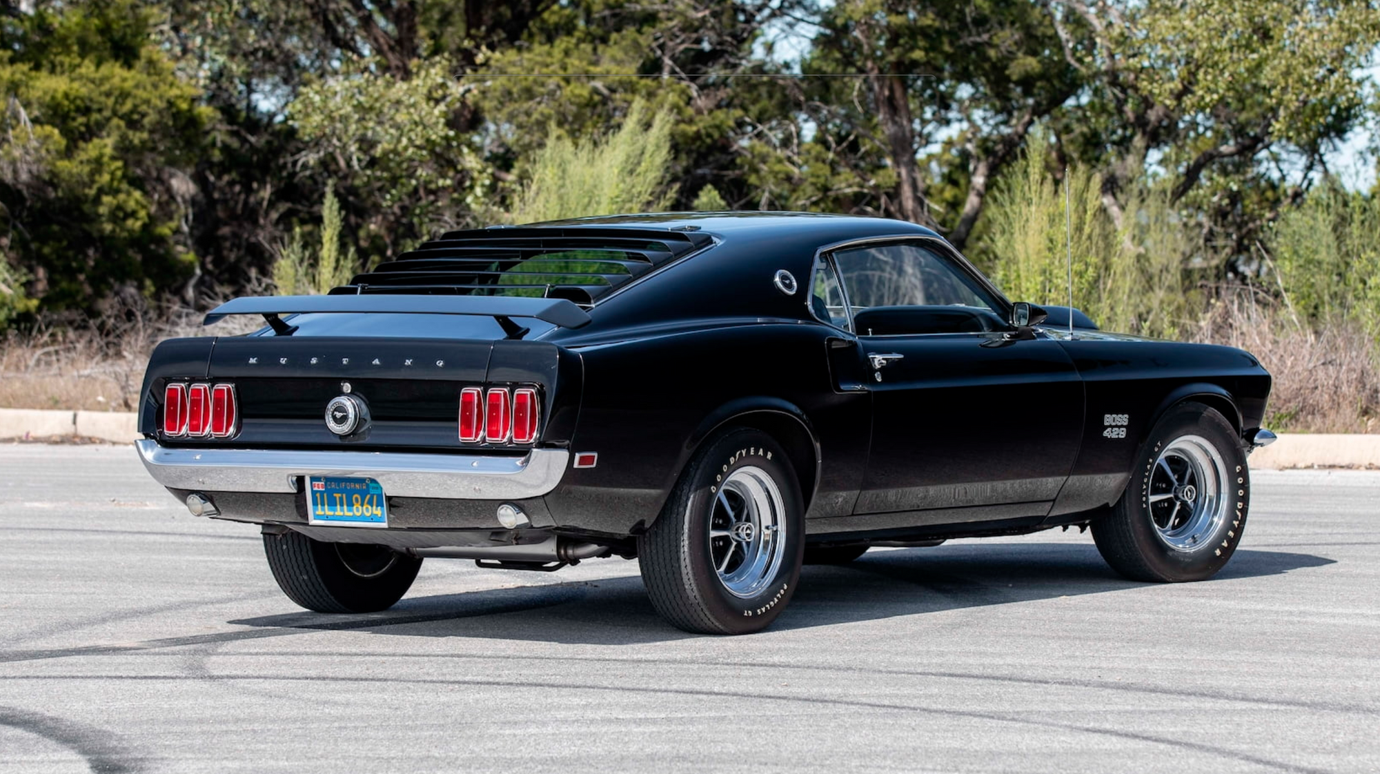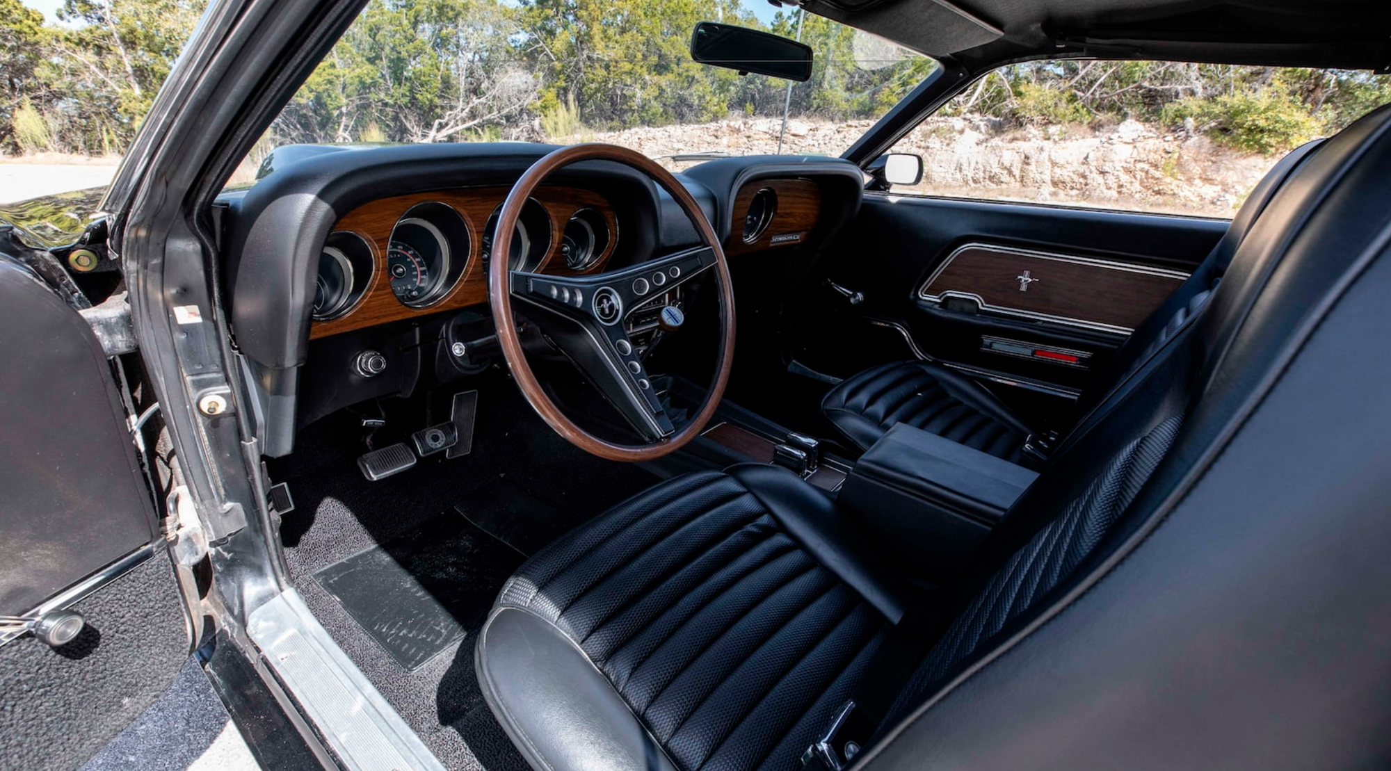 This beautiful Boss 429 Mustang is sprayed in Raven Black and still retains its factory body panels. Also outside are color-keyed side mirrors and a wide functional hood scoop. All Boss 429s were meticulously built by Kar-Kraft, a Ford subcontractor hired due to the time it took to built these cars and fit the large-displacement V8 inside the engine bay. To fit the 15-inch Magnum 500 wheels wrapped with Goodyear F60-15 bias-ply rubber, Kar-Kraft reshaped the fender lips on each car. The wheels had flat black inserts, a unique touch only found on Boss 429 cars. In fantastic condition, the car only has 14,575 original miles. This car features serial number KK 1773, with the acronym standing for Kar-Kraft.